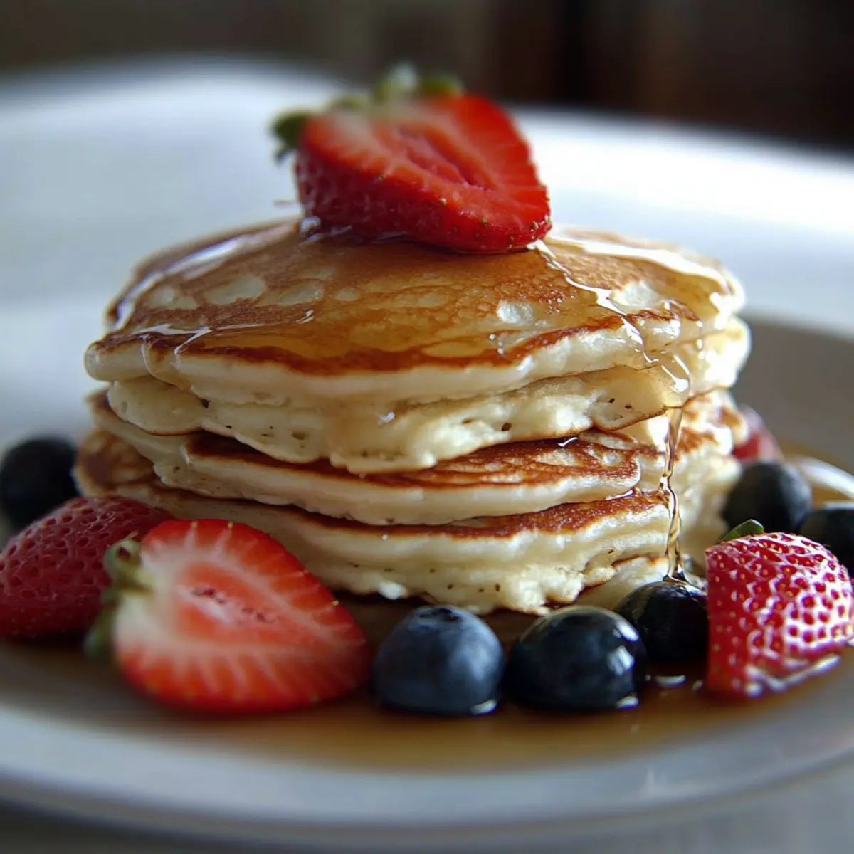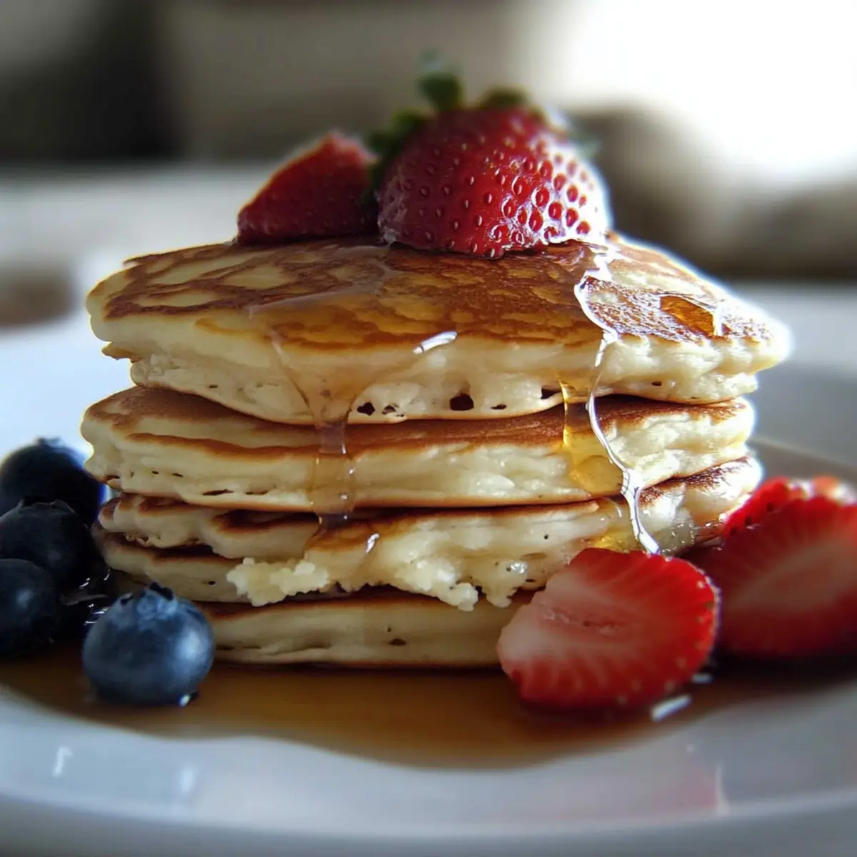 As I flipped my griddle cakes one morning, a delightful aroma filled the kitchen, instantly whisking me away to lazy Sunday breakfasts at my favorite diner. These Light & Fluffy Sour Cream Pancakes bring a comforting twist to my breakfast table, and I can’t get enough of their airy texture combined with just a hint of tang. Not only are they incredibly quick to whip up—perfect for a busy weekday morning—the slight sourness from the cream makes them a surprising crowd-pleaser that keeps my family coming back for more. Whether you enjoy them drizzled with maple syrup, topped with fresh berries, or even with a dollop of yogurt, I promise you’ll relish every bite. Ready to give your mornings a tasty makeover? Why Are These Pancakes So Irresistible? Fluffy Texture: Each bite melts in your mouth, thanks to the combination of sour cream and tender batter. Quick Prep: These pancakes come together in no time, making them the perfect solution for busy mornings. Flavorful Twist: The subtle tang from sour cream creates a delightful contrast with sweetness, setting them apart from standard pancakes. Versatile Toppings: Whether you prefer fresh fruit, maple syrup, or a touch of yogurt, these pancakes are perfect for customizing to your taste. Crowd-Pleaser: Impress family and friends alike with this delicious breakfast that elevates any brunch moment! If you love this recipe, try my Cajun Salmon Pasta for another family favorite that packs a punch! Sour Cream Pancake Ingredients • Here’s everything you need to create these delightful pancakes! For the Batter Egg – Provides structure and richness; use a large egg for best results. Buttermilk – Adds moisture and a slight tang; substitute with regular milk if needed, adding a splash of vinegar to mimic acidity. Sour Cream – Imparts extra moisture and a tender crumb; Greek yogurt is an excellent alternative. Melted Butter – Enhances flavor and prevents sticking; use unsalted butter for better control over salt levels. All-Purpose Flour – Forms the base of the pancake; whole wheat flour can be used for added nutrition. Baking Powder – Provides leavening to create fluffy pancakes; ensure it’s fresh for full effectiveness. Baking Soda – Works with acidic ingredients for additional lift; omit if using self-rising flour. Salt – Enhances the flavors of all ingredients; use kosher or fine salt, adjusting based on personal taste. Sugar – Adds sweetness to balance flavors; for a less sweet option, reduce sugar or substitute with honey. Enjoy whipping up these Sour Cream Pancakes and savoring their deliciousness! Step‑by‑Step Instructions for Sour Cream Pancakes Step 1: Mix Wet Ingredients In a medium bowl, whisk together one large egg, 1 cup of buttermilk, 1/2 cup of sour cream, and 2 tablespoons of melted unsalted butter until smooth. Ensure there are no lumps, as this ensures a creamy batter. This combination creates a flavorful base, infused with a slight tang that will characterize your delicious sour cream pancakes. Step 2: Combine Dry Ingredients In another bowl, mix together 1 cup of all-purpose flour, 1 tablespoon of baking powder, 1/2 teaspoon of baking soda, 1/4 teaspoon of salt, and 2 tablespoons of sugar. Stir well until fully combined, ensuring no clumps remain. This step is crucial as it incorporates the leavening agents that will give your pancakes their fluffy texture. Step 3: Fold Ingredients Together Gently fold the dry ingredients into the wet mixture using a spatula until just combined. Do not overmix; it’s perfectly fine if a few lumps remain, as this will ensure your sour cream pancakes maintain that light and airy quality. Let the batter rest for about 5 minutes while you prepare the griddle. Step 4: Preheat the Griddle Preheat your griddle to 350°F, making sure it’s fully heated for optimal cooking. To prevent sticking, add a little melted butter across the surface once it’s hot. You can test the temperature by sprinkling a few drops of water on the griddle—if they dance and evaporate, it’s ready for the batter. Step 5: Cook the Pancakes Scoop about 1/3 cup of batter onto the prepared griddle for each pancake. Cook until bubbles form and pop on the surface, which should take about 2-3 minutes. The edges will look set, giving visual confirmation that it’s time for the next step. Step 6: Flip and Finish Cooking Carefully flip the pancakes using a spatula, cooking for an additional 2-3 minutes until they turn golden brown and are cooked through. Keep an eye on them to avoid burning, as you want your sour cream pancakes to be perfectly fluffy and tender all the way through. Step 7: Serve and Enjoy Remove the pancakes from the griddle and serve them immediately while warm. Top them with your favorite syrup, fresh fruit, or a dollop of yogurt to elevate the experience. These delightful sour cream pancakes are best enjoyed fresh, capturing their light and fluffy essence! What to Serve with Light & Fluffy Sour Cream Pancakes Elevate your breakfast experience with delightful sides that bring balance and brighten your morning routine. Crispy Bacon: The salty, savory crunch of golden bacon complements the sweetness of the pancakes beautifully. It’s a classic pairing that never goes out of style. Fresh Berries: A medley of strawberries, blueberries, and raspberries adds a burst of freshness and brightness. Their natural sweetness beautifully contrasts the fluffy pancakes. Maple Syrup: The rich, sweet flavor of pure maple syrup drizzled over the pancakes is an indulgent choice. It’s the perfect finishing touch that enhances every bite. Whipped Cream: Light and airy whipped cream adds a touch of decadence. It’s an ideal topping that combines well with any fruit or syrup. Yogurt Parfait: Layering Greek yogurt with granola and fruit creates a refreshing side. This offers a delightful creaminess that complements the fluffiness of the pancakes. Smoothie: Whip up a refreshing smoothie with spinach, banana