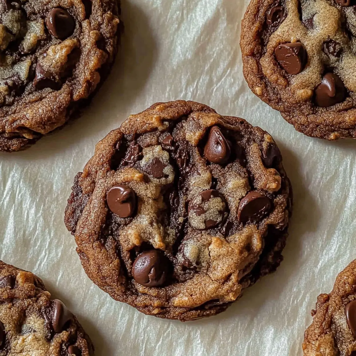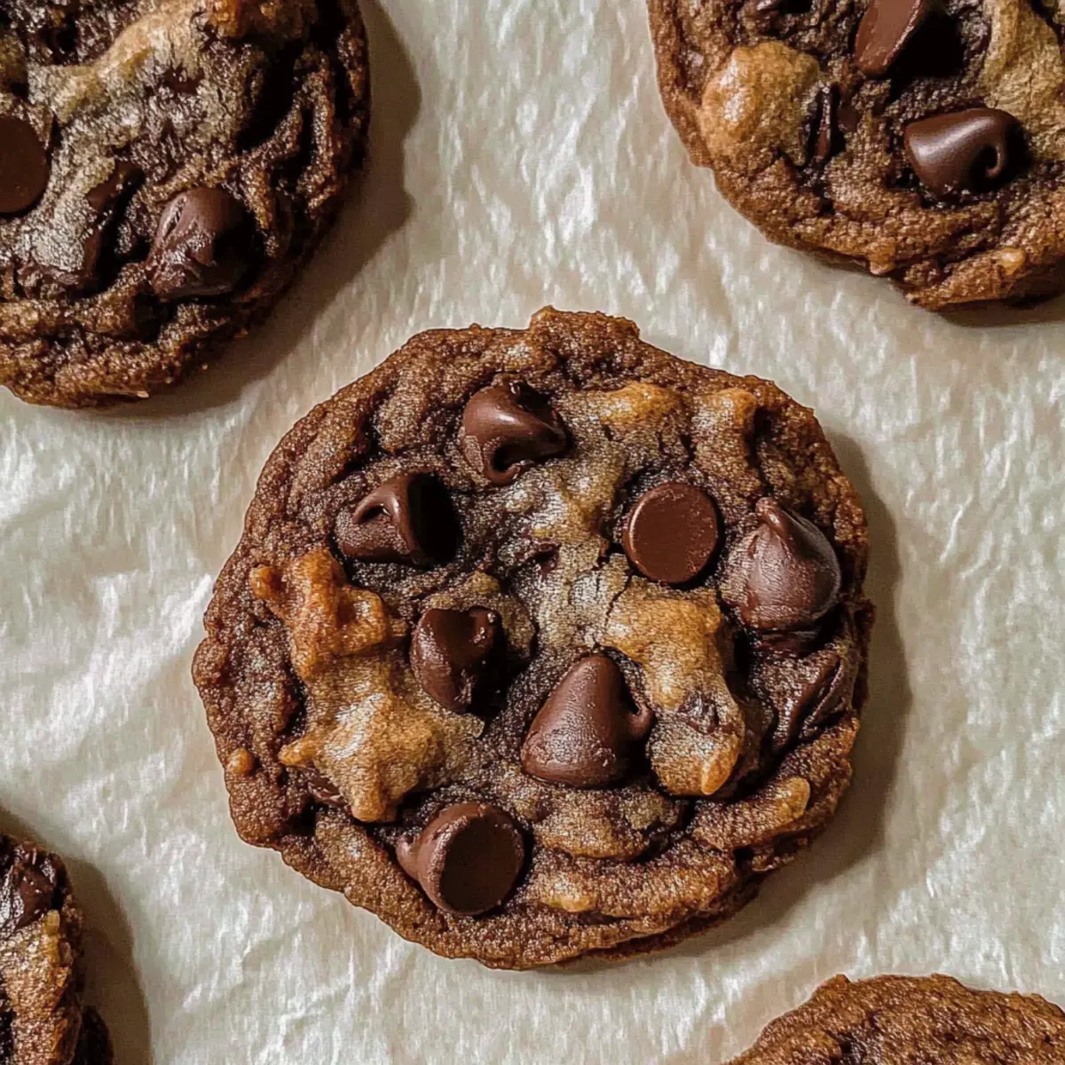 When my kitchen filled with the rich, warm smell of baking, I knew I had stumbled upon a true gem: Sourdough Double Chocolate Chip Cookies. This delightful treat marries the tang of sourdough discard with a fudgy cocoa twist, serving up an unexpected flavor experience that elevates any cookie moment. These gooey cookies are not just a chocolate-lover’s dream; they’re also a quick and easy bake, requiring less than an hour from start to finish without any tedious chilling. Perfect for those cherished moments when you need a sweet boost or as a cozy dessert to share with family, these cookies create warmth and joy in every bite. Are you ready to turn your sourdough discard into something delicious? Why are these cookies a game-changer? Irresistible Flavor: Revel in the rich chocolate experience that combines dark chocolate chips with a hint of tang from sourdough, creating an unforgettable taste. Quick to Bake: You won’t spend all day in the kitchen—these cookies come together in under an hour, no chilling required! Perfect for Sharing: Whether it’s a family gathering or a casual get-together, these cookies are bound to be a crowd-pleaser, satisfying both adults and kids alike. Gooey Goodness: Enjoy the fudgy texture that melts in your mouth, making each bite a decadent treat reminiscent of a brownie. Waste Not, Want Not: Transform leftover sourdough discard into these delightful sweets, a smart way to avoid food waste while treating yourself. Try serving them warm with a glass of cold milk, paired perfectly with my Cotton Candy Cookies for an adventurous dessert platter! Sourdough Double Chocolate Chip Cookies Ingredients Transform your baking with these lush cookies! For the Batter • Salted Butter – Adds richness and moisture; substitute with unsalted butter and add a pinch of salt. • White Sugar – Provides sweetness and helps with cookie spread; no direct substitute recommended. • Brown Sugar – Contributes moisture and a caramel flavor; can substitute with coconut sugar for a lower glycemic index. • Eggs – Binds the ingredients together; for a vegan option, use flaxseed meal or applesauce. • Sourdough Discard – Adds a slight tang and moisture, enhancing chewiness; can use active sourdough starter if needed. • Vanilla Extract – Adds depth of flavor; substitute with vanilla bean paste for a stronger taste. • Baking Soda – Provides leavening for cookie rise; must be used for best results. • Salt – Enhances flavor and balances sweetness; adjust according to taste preference. • Cocoa Powder – Provides rich chocolate flavor; use Dutch-processed cocoa for a milder taste. • Instant Chocolate Pudding Mix – Ensures a fudgy texture; do not skip this key ingredient! • All-Purpose Flour – Creates structure in cookies; can be substituted with gluten-free flour mix or oat flour for a gluten-free version. • Dark Chocolate Chips – Adds chunks of chocolate goodness; can replace with milk or white chocolate if desired. Step‑by‑Step Instructions for Sourdough Double Chocolate Chip Cookies Step 1: Make the Dough Begin by creaming 1 cup of softened salted butter with 1/2 cup of white sugar and 1 cup of brown sugar in a stand mixer for about 2 minutes until light and fluffy. Then, add 2 large eggs, 1 cup of sourdough discard, and 2 teaspoons of vanilla extract, mixing until well combined. Gradually sift in 1/2 cup of cocoa powder and 1 package of instant chocolate pudding mix, then mix in 2-2 1/2 cups of all-purpose flour, 1 teaspoon of baking soda, and a pinch of salt until you have a soft dough. Finally, fold in 1 cup of dark chocolate chips. Step 2: Preheat Oven While the dough is resting, preheat your oven to 350°F (180°C). This temperature ensures the cookies bake evenly, resulting in perfectly gooey sourdough double chocolate chip cookies. Allow about 10 minutes for the oven to reach the desired temperature, which will give you just enough time to prepare the baking sheets. Step 3: Prepare Baking Sheets Line a baking sheet with parchment paper to prevent the cookies from sticking during baking. Use an ice cream scoop or spoon to drop heaping tablespoons of cookie dough onto the prepared sheet, leaving about 2 inches of space between each dough ball. This spacing allows the cookies to spread beautifully and form those delightful chewy edges. Step 4: Bake Cookies Place the baking sheet in the preheated oven and bake for 10-12 minutes. Keep an eye on them, as you want the edges to be firm while the centers appear slightly under-baked for that gooey texture. Once they look just right, remove the tray from the oven—don’t worry if the centers are soft; they will firm up as they cool. Step 5: Cool the Cookies Allow the cookies to cool on the baking sheet for about 5 minutes before transferring them to a wire rack. This resting time enables the flavors to develop and the steam to escape, giving you perfectly textured sourdough double chocolate chip cookies. Let them cool completely on the rack before indulging in their chocolaty goodness! What to Serve with Sourdough Double Chocolate Chip Cookies Indulge in a complete dessert experience that complements the rich, gooey goodness of these chocolatey treats. Cold Milk: The classic pairing that enhances the cookies’ sweetness and balances the rich flavors, offering a nostalgic taste of childhood. Vanilla Ice Cream: Serve warm cookies over a scoop of vanilla ice cream for an irresistible à la mode dessert; the melty ice cream creates a heavenly combination with the chocolate. Fresh Berries: The tartness of raspberries or strawberries cuts through the sweetness of the cookies, providing a refreshing contrast that brightens up every bite. Coffee: A strong cup of coffee offers a delightful bitterness that intensifies the chocolate flavors, making it a true treat for coffee lovers. Chocolate Sauce Drizzle: Elevate your cookies by drizzling a rich chocolate sauce on top. It adds an extra layer of indu