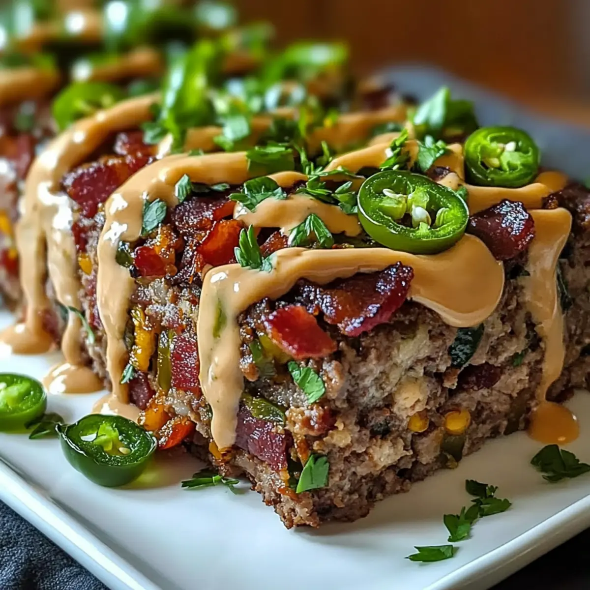 The aroma hit me like a warm hug as I pulled my Smoky Jalapeño Popper Meatloaf from the oven. This comforting dish is not your grandmother’s meatloaf; it’s a delightful twist that combines creamy cheese, spicy jalapeños, and crispy bacon in every bite. As someone who loves homemade meals but is constantly battling the temptation of fast food, this zero-carb masterpiece is a game-changer. Not only is it quick to prepare, but it’s also bursting with flavors that will leave you craving more. Perfect for busy weeknights or a cozy weekend dinner, this meatloaf offers an indulgent experience without the guilt. Are you ready to spice up your dinner table? Why Is This Meatloaf So Irresistible? Comforting Flavor Explosion: This Smoky Jalapeño Popper Meatloaf offers an indulgent medley of creamy cheese, spicy jalapeños, and crispy bacon that tantalizes the taste buds. Zero-Carb Wonder: Designed for those watching their carbs, it satisfies cravings without guilt. Quick Prep: With simple steps and prep ahead options, it’s perfect for busy weeknights. Crowd-Pleasing Delight: Guaranteed to impress family and friends, just like my Bang Chicken Bowl! Versatile Substitutions: Swap ingredients for tailored flavors, ensuring everyone can enjoy it their way. Spicy Jalapeño Popper Meatloaf Ingredients For the Meatloaf Ground Beef – A rich source of protein providing the structure; grass-fed enhances flavor, and feel free to swap with ground turkey for a lighter option. Jalapeños – Infuses heat and flavor; adjust the quantity based on your spice tolerance—omit for a milder taste. Cream Cheese – Adds creaminess and depth; can be substituted with mascarpone for a delightful twist. Crispy Bacon – Introduces a smoky crunch that elevates the dish; turkey bacon works for a healthier choice. Smoked Paprika – Delivers a warm, smoky essence; use regular paprika if that’s what you have on hand. Eggs – Acts as a bonding agent to keep the meatloaf together. Seasonings (salt, pepper) – Essential for elevating flavor; adjust to taste for your ideal seasoning. Optional Topping Ranch Dressing – Drizzling on top adds a cool complement to the spicy meatloaf flavors; looks great on your dinner table! This Spicy Jalapeño Popper Meatloaf is sure to ignite your taste buds and make mealtime exciting again! Step‑by‑Step Instructions for Spicy Jalapeño Popper Meatloaf Step 1: Preheat the Oven Begin by preheating your oven to 350°F (175°C). This temperature is ideal for cooking the meatloaf evenly while keeping it moist. Prepare a baking dish—preferably a loaf pan—as it will be the home for your luscious Spicy Jalapeño Popper Meatloaf, ensuring a beautiful shape as it bakes. Step 2: Combine the Ingredients In a large mixing bowl, combine the ground beef, chopped jalapeños, softened cream cheese, crispy bacon, smoked paprika, beaten eggs, and salt and pepper. Use your hands or a sturdy wooden spoon to mix everything together gently. Take care not to overmix, as that could make the meatloaf tough. Aim for a well-integrated mixture with a specific, cohesive texture. Step 3: Shape the Meatloaf Once your ingredients are thoroughly mixed, transfer the meat mixture from the bowl to your prepared baking dish. Shape it into a loaf, pressing lightly to form a tight structure. The meatloaf will hold its shape during baking, so ensure it has an even thickness for consistent cooking. It’s time for your delicious Spicy Jalapeño Popper Meatloaf to enter the oven! Step 4: Bake the Meatloaf Place your meatloaf in the preheated oven and let it bake for 45 to 60 minutes. To test for doneness, insert a meat thermometer into the center; it should read at least 160°F (71°C). During this time, you will enjoy the mouthwatering aroma as it fills your kitchen, hinting at the deliciousness to come. Step 5: Rest Before Slicing Once your Spicy Jalapeño Popper Meatloaf reaches the proper temperature, carefully remove it from the oven. Let it rest on a cutting board for about 10 minutes. This resting period is crucial, as it allows the juices to redistribute within the meatloaf, ensuring every slice is moist and flavorful when you cut into it. Expert Tips for Spicy Jalapeño Popper Meatloaf • Avoid Overmixing: Gentle mixing ensures a tender texture for your meatloaf. Overmixing can lead to a dense result, so mix just until combined. • Check Internal Temperature: Use a meat thermometer to confirm your Spicy Jalapeño Popper Meatloaf reaches 160°F (71°C). This prevents undercooking or drying out. • Prep Ahead: You can prepare the meatloaf mixture ahead of time and store it in the fridge. Bake it when you’re ready for an easy dinner solution. • Use a Loaf Pan: A loaf pan keeps your meatloaf shaped nicely and allows for even cooking. If you prefer a crisper exterior, bake on a sheet pan. • Let It Rest: Allow the meatloaf to rest for 10 minutes before slicing. This helps retain moisture and gives the best texture in every slice. What to Serve with Smoky Jalapeño Popper Meatloaf Elevate your dining experience with thoughtful pairings that harmonize with the bold flavors of this comforting dish. Creamy Mashed Potatoes: These smooth and buttery mashed potatoes provide a velvety contrast to the meatloaf’s texture, making every bite delightful. Spicy Roasted Veggies: Charred Brussels sprouts or broccoli tossed with spices can echo the jalapeño’s heat while adding a satisfying crunch. Fresh Cucumber Salad: A light and refreshing salad featuring crunchy cucumbers and tangy vinaigrette balances the meal, cooling down the spice. Garlic Bread: The crispy, garlicky goodness creates an irresistible side that pairs perfectly with meatloaf’s savory flavors, ideal for soaking up any sauce. Coleslaw: Creamy coleslaw adds a nice crunch and a touch of sweetness that brightens up the richness of the jalapeño popper meatloaf. Sweet Corn Muffins: The subtle sweetness of cornbread rounds out the meal beautifully, co