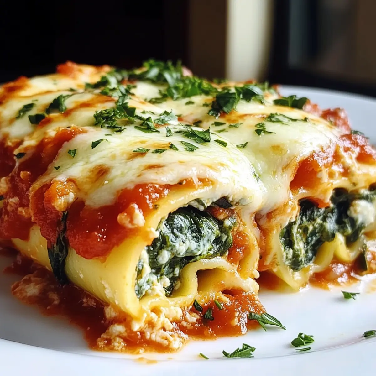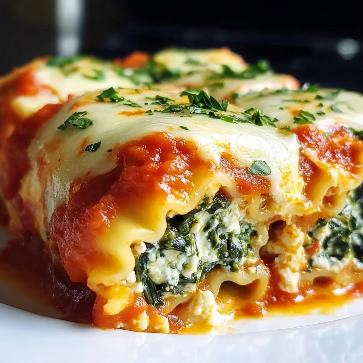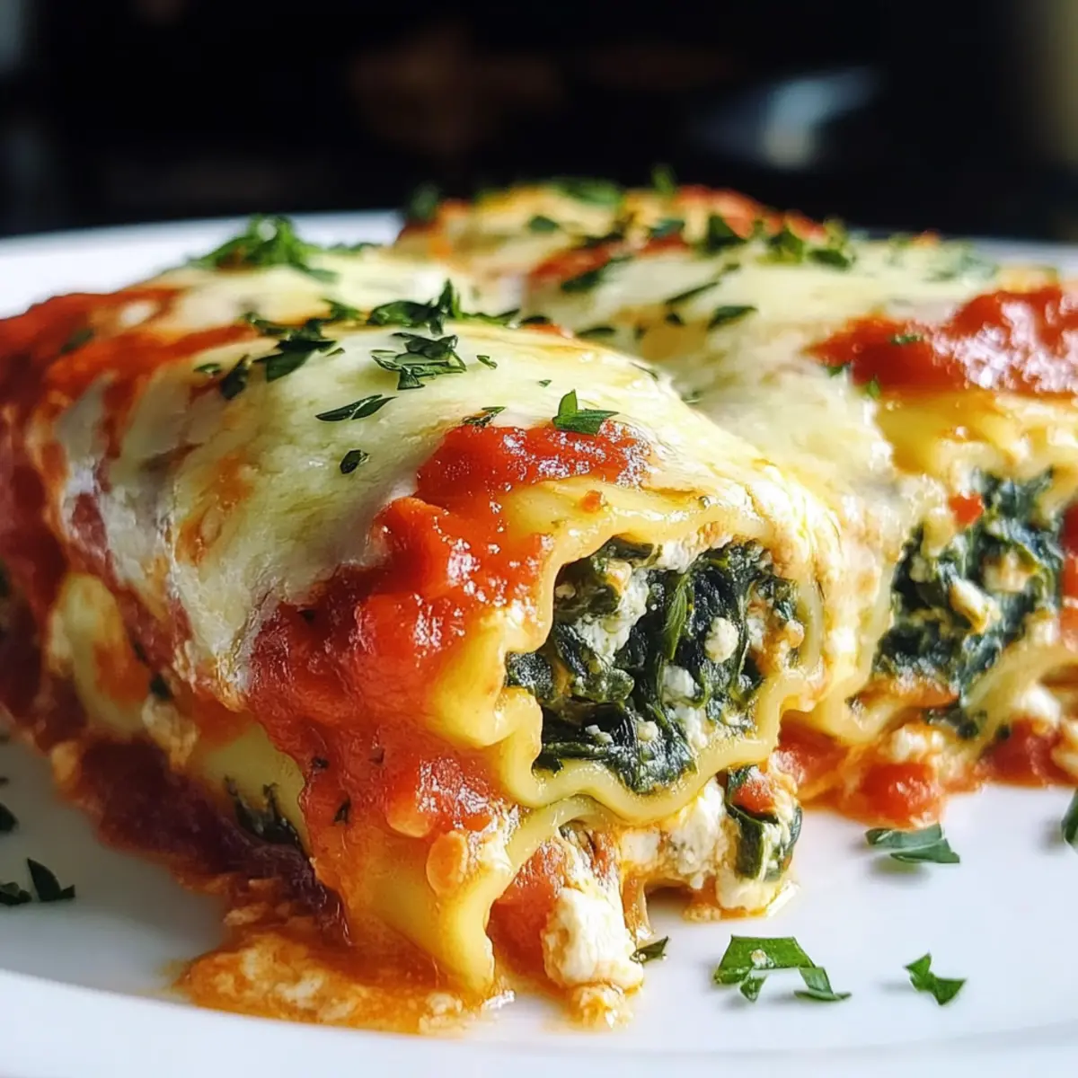Amidst the chaos of my bustling kitchen, I stumbled upon a meal that transforms the ordinary into the extraordinary—Spinach Lasagna Roll Ups. These delightful bundles flawlessly marry creamy cheeses and vibrant spinach, all wrapped in tender lasagna noodles. If you’re like me and appreciate the comfort of traditional lasagna but often shy away from the tedious layering, this recipe will become a new favorite. Not only are these roll ups a gorgeous addition to family dinners, but they’re also perfect for meal prep, allowing you to savor a healthy, meatless option throughout the week. So, are you ready to roll up your sleeves and make a dish that’s as comforting as it is convenient? Why will you love Spinach Lasagna Roll Ups? Simplicity at Its Best: This recipe is a breeze, allowing you to whip up a delicious dish with minimal fuss and no complicated layers. Deliciously Rich Flavor: The creamy three-cheese filling paired with the sautéed spinach makes every bite a comforting delight. Perfect for Meal Prep: Prep these roll-ups ahead of time for quick, weeknight dinners that everyone will adore—just reheat and enjoy! Pair them with a side of garlic bread to elevate your meal even further. Crowd-Pleasing Appeal: Whether it’s family dinner or a get-together with friends, these roll-ups are bound to impress and satisfy even the pickiest eaters. Health-Conscious Choice: Packed with nutrients from the spinach and protein from the cheese, they make for a hearty yet guilt-free meal option. Spinach Lasagna Roll Ups Ingredients For the Roll Ups Lasagna Noodles – Provide structure and form; use gluten-free noodles for a gluten-free version. Frozen Spinach – Adds nutrition and flavor; fresh spinach can be used but should be cooked and drained of excess moisture. Ricotta Cheese – Adds creaminess and flavor; substitute with cottage cheese for a lighter option. Mozzarella Cheese – Essential for gooey texture; part-skim mozzarella can be used for a lower-fat version. Parmesan Cheese – Contributes nutty flavor; aged Pecorino can be substituted for a different taste. Egg – Binds the filling ingredients together; omit for a vegan version or substitute with a flax egg. For the Sauce Marinara Sauce – Provides flavor and moisture; store-bought or homemade can be used for your Spinach Lasagna Roll Ups. Salt and Pepper – Enhance overall flavor; adjust according to individual preference. Feel free to gather these ingredients and dive into the delightful process of making your very own Spinach Lasagna Roll Ups! Step‑by‑Step Instructions for Spinach Lasagna Roll Ups Step 1: Cook Noodles Bring a large pot of salted water to a rolling boil. Carefully add the lasagna noodles and cook them according to package instructions until al dente, usually about 8-10 minutes. Once cooked, drain the noodles and lay them flat on a sheet of parchment paper to cool, preventing them from sticking together. Step 2: Prepare Spinach While the noodles cool, prepare the spinach for your Spinach Lasagna Roll Ups. Thaw the frozen spinach by placing it in the microwave for a few minutes or by leaving it in the fridge overnight. After thawing, squeeze out excess moisture using a clean kitchen towel, ensuring the filling stays rich and creamy without being watery. Step 3: Make Filling Preheat your oven to 350°F (175°C), allowing it to reach temperature while you prepare the filling. In a large mixing bowl, combine the beaten egg, squeezed spinach, ricotta cheese, 1 cup of mozzarella, Parmesan cheese, salt, and pepper. Mix until the ingredients are well combined and creamy—this will be the delicious filling for your Spinach Lasagna Roll Ups. Step 4: Assemble Rolls Take your cooled lasagna noodles and set up a workspace with your filling and a baking dish. Spread about 1 cup of marinara sauce evenly across the bottom of the baking dish to prevent sticking. Layer the filling evenly over each noodle, then carefully roll them up tightly, placing them seam-side down into the dish in a single layer. Step 5: Add Sauce and Cheese Once all the roll-ups are assembled, generously pour the remaining marinara sauce over the top, ensuring each roll is well-coated for moisture and flavor. Finish by sprinkling the remaining mozzarella cheese evenly over the sauce, creating a melty, delicious top layer for your Spinach Lasagna Roll Ups. Step 6: Bake Cover the baking dish with aluminum foil to lock in moisture, then place it in the preheated oven. Bake for 30 minutes at 350°F (175°C). After this initial baking, remove the foil and continue baking for an additional 5-10 minutes until the cheese is beautifully melted and just starts to turn golden brown, signaling that your Spinach Lasagna Roll Ups are ready to be enjoyed! Spinach Lasagna Roll Ups Variations Feel free to add your own twist to these scrumptious roll ups for an even more delightful experience! Mushroom Medley: Add sautéed mushrooms to the filling for an earthy flavor boost. It’s a fabulous way to elevate your dish! Zucchini Surprise: Integrate shredded zucchini into the filling for extra nutrition and moisture. This addition will keep the roll ups light and fresh. Cheesy Alternatives: Swap ricotta with goat cheese or feta for a tangy spin. Each cheese adds its unique flair while creating creamy goodness! Alfredo Adventure: Use a rich Alfredo sauce instead of marinara for an indulgent twist. Talk about a luxurious twist on a classic favorite! Extra Greens: Mix in some chopped kale or Swiss chard for added color and nutrients. It’s a sneaky way to incorporate more greens into a comforting dish. Heat Things Up: Add some crushed red pepper flakes to the filling for a spicy kick. This is sure to delight those who love a bit of heat! Herbed Perfection: Fold in fresh herbs like basil or thyme into the filling for a fragrant burst of flavor. It elevates the dish into something extraordinary. Savory Nutty Crunch: Top with toasted pine nuts or walnuts before baking fo