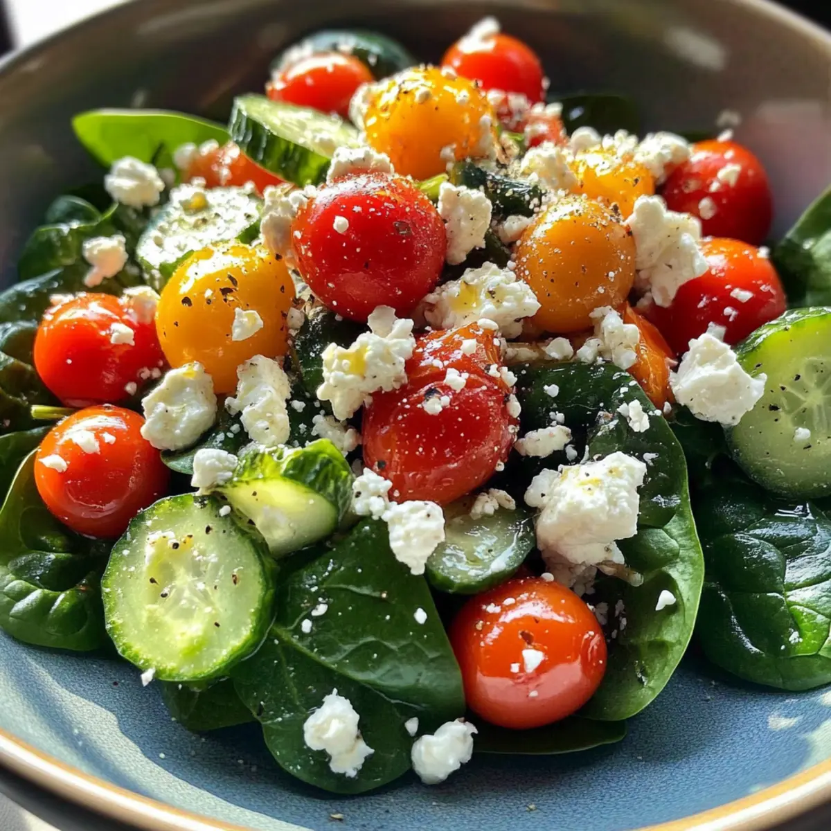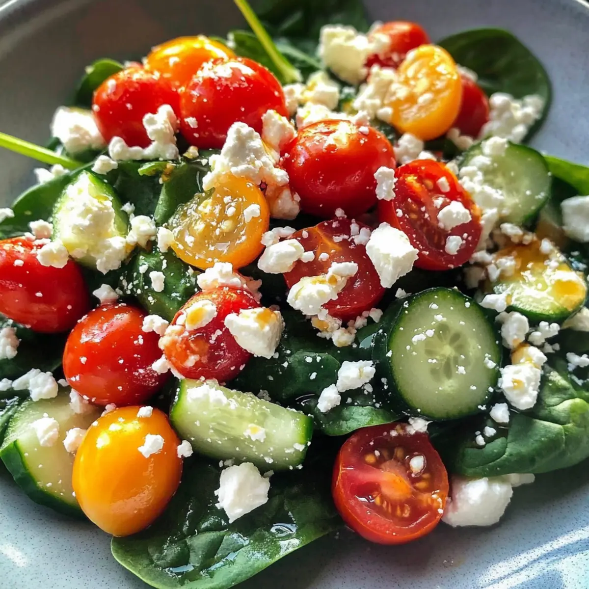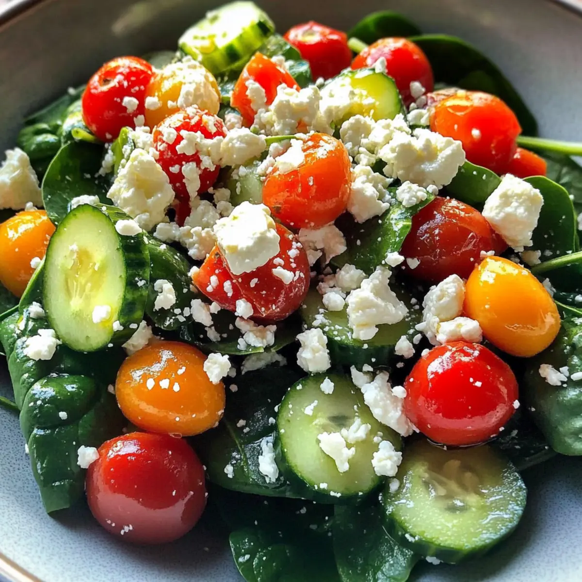 As I reached for the fresh spinach, the vibrant colors of spring began to dance around me—a reminder that the season of renewal brings with it a bounty of flavors and textures. This Spring Day Salad is my go-to dish when I want to celebrate those bright, sunshiny days, combining crispy cucumber, juicy cherry tomatoes, and the tang of creamy feta cheese for a delightful experience. With just 15 minutes required, this vegetarian recipe is perfect for a quick meal or a vibrant addition to your next picnic. Not only is it light and refreshing, but it also transforms simple ingredients into a masterpiece that can brighten any table. Ready to create a dish that will have everyone craving seconds? Let’s dive into the recipe! Why is this Spring Day Salad special? Bright, Fresh Ingredients: Each bite bursts with vibrant flavors from the combination of spinach, juicy cherry tomatoes, and crunchy cucumbers—perfect for spring! Quick to Make: Ready in just 15 minutes, it’s a lifesaver for busy days when you still crave something delicious. Healthy and Vegetarian: Packed with nutrients and completely vegetarian, this salad makes it easy to enjoy healthy eating without sacrificing taste. Versatile Serving Options: Pair it with grilled chicken for a hearty meal, or enjoy it as a light option next to your favorite dishes, like Crab Salad Refreshing or Quinoa Crunch Salad. Crowd-Pleasing Appeal: Perfect for picnics or family dinners, it’s a colorful dish guaranteed to impress guests and keep everyone reaching for more. Transform your dining experience with this delightful creation! Spring Day Salad Ingredients For the Salad • Spinach – Forms the fresh base of the salad, and using baby spinach keeps it tender. • Cherry Tomatoes – Adds delightful sweetness; you can swap them for regular tomatoes for a richer flavor. • Cucumber – Provides a cool, crunchy texture; feel free to peel for a different taste. • Feta Cheese – Brings a creamy tanginess; goat cheese can be a lovely substitute for a unique twist. For the Dressing • Olive Oil – The heart of the dressing that elevates all flavors; choose regular or extra-virgin based on preference. • Lemon Juice – Infuses brightness and acidity; always opt for fresh lemon juice for the best taste. • Salt & Pepper – Essential for seasoning; adjust to your liking for a perfect blend in your Spring Day Salad. Step‑by‑Step Instructions for Spring Day Salad Step 1: Wash the Spinach Begin by rinsing fresh baby spinach under cold running water to remove any dirt or grit. After washing, gently spin the leaves in a salad spinner or pat them dry with a clean kitchen towel. This step ensures your Spring Day Salad starts with fresh, clean greens that will be crispy and inviting. Step 2: Prepare the Vegetables In a large mixing bowl, combine the cleaned spinach with halved cherry tomatoes and diced cucumber. For an appealing presentation, ensure the cucumber is cut into bite-sized pieces. Toss these vibrant ingredients together gently, allowing them to intermingle and showcase their colors and textures. Step 3: Add the Feta Cheese Sprinkle crumbled feta cheese generously over the mixed vegetables in the bowl. The creamy, tangy feta will add a delightful richness to your Spring Day Salad. As you do this, take a moment to admire the beautiful colors of your salad, which will make it even more appetizing. Step 4: Whisk the Dressing In a separate small bowl, whisk together olive oil, fresh lemon juice, salt, and pepper until well combined. Aim for a balanced flavor profile; you want the dressing to be bright and zesty without overpowering the salad. Taste and adjust the seasoning as needed to suit your personal preference. Step 5: Combine the Salad with Dressing Drizzle the freshly prepared dressing over the salad mixture. Using salad tongs or two large spoons, gently toss the ingredients together until everything is evenly coated with the dressing. This step not only adds flavor but also brings together the stunning ingredients of your Spring Day Salad. Step 6: Serve Immediately For the best taste and texture, serve your Spring Day Salad immediately after tossing. The fresh ingredients will maintain their crunch and vibrant colors, making it a delightful option for any meal. Enjoy this refreshing salad as a stand-alone dish or alongside your favorite protein! Make Ahead Options This Spring Day Salad is ideal for those busy weekdays and can easily be prepped ahead! You can wash and dry the spinach and store it in an airtight container in the refrigerator up to 3 days in advance. Additionally, slice the cucumbers and halve the cherry tomatoes a day ahead, keeping them separate to maintain their crunch. The feta can be crumbled and stored alongside the veggies. When you’re ready to serve, simply toss all the ingredients together with the freshly whipped dressing, which you can also prepare in advance and refrigerate for up to 24 hours. Just remember to dress the salad just before serving to keep everything fresh and vibrant! How to Store and Freeze Spring Day Salad Fridge: Store leftover Spring Day Salad in an airtight container for up to 2 days. Keep the dressing separate until ready to serve for optimal freshness. Freezer: It’s not recommended to freeze this salad due to the delicate texture of the ingredients; freezing may result in sogginess upon thawing. Reheating: There’s no need to reheat this salad; it’s best enjoyed chilled. If refrigerated, allow it to come to room temperature or slightly chill before serving. Expert Tips for Spring Day Salad Choose Fresh Greens: Always opt for fresh spinach; wilted greens can ruin the salad’s vibrant appeal and crunchy texture. Dress Right Before Serving: To keep your Spring Day Salad crisp, add the dressing just before serving to prevent sogginess. Balance Your Flavors: Taste your dressing and adjust the salt and lemon juice; this harmony enhances the natural flavors of the salad. Add Extra C
