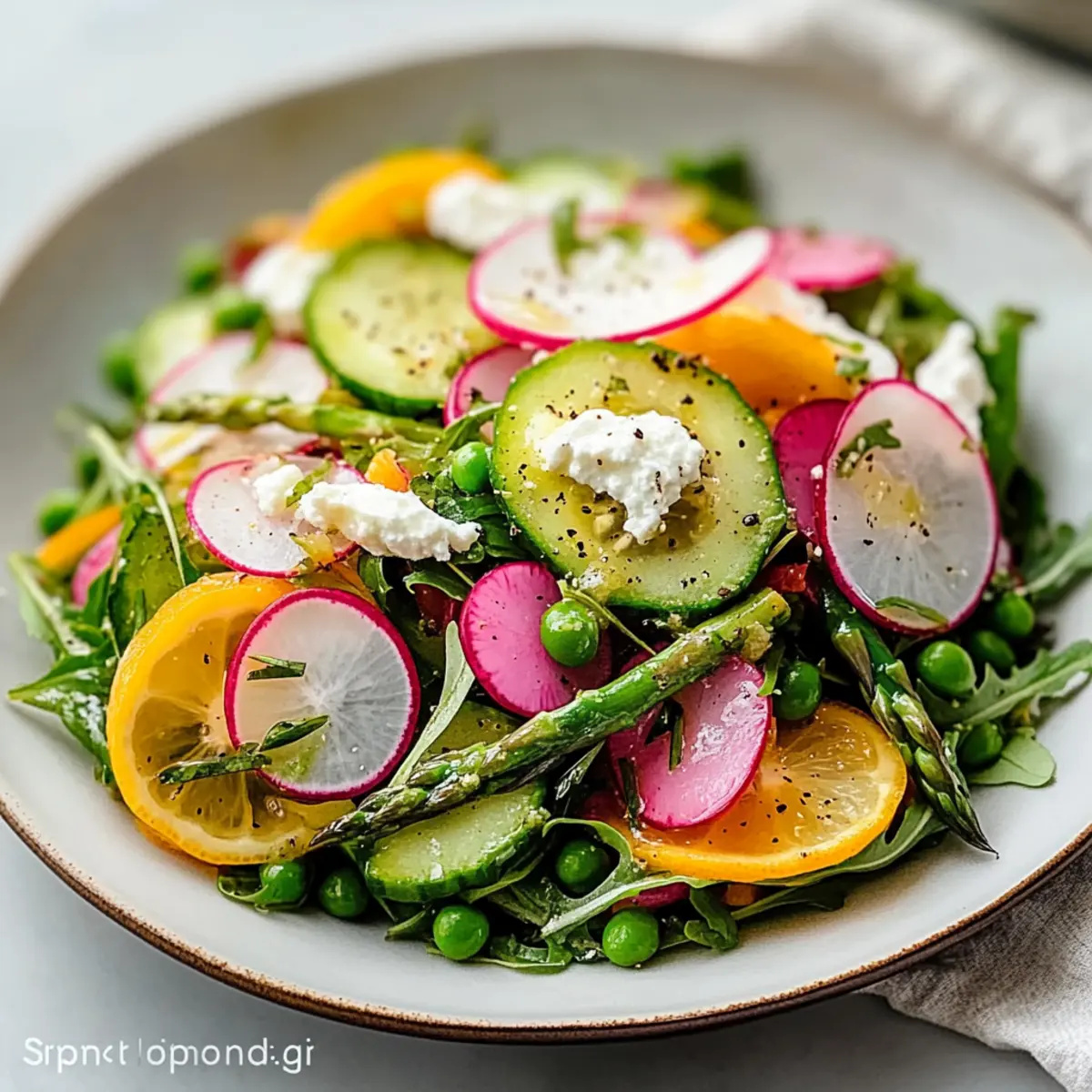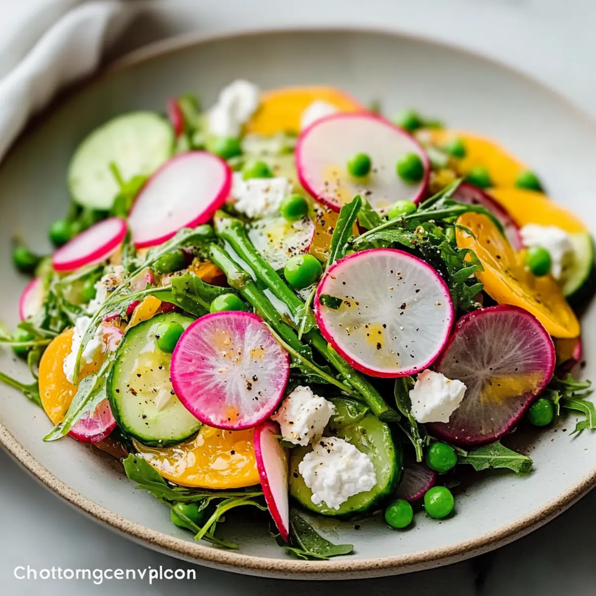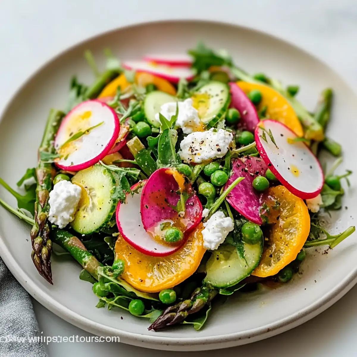 Springtime brings a vibrant wave of inspiration, and nothing embodies this season quite like a fresh Spring Salad with Lemon Vinaigrette. As I tossed together crisp baby arugula and an array of colorful seasonal vegetables, I was reminded of the joy of cooking with ingredients that sing of sunshine and rejuvenation. This salad is not only a feast for the eyes but also a quick and nutritious option, perfect for those busy days when you desire something healthy without sacrificing flavor. The zesty lemon vinaigrette perfectly coats each bite, making it a delightful addition to your spring luncheons or a refreshing side for your evening meals. Are you ready to elevate your salad game and embrace the essence of spring in your kitchen? Let’s dive into this delicious recipe! Why is this spring salad irresistible? Fresh, Seasonal Ingredients: This salad showcases a delightful mix of seasonal produce, ensuring every bite bursts with flavor and nutrition. Zesty Lemon Vinaigrette: The bright, tangy dressing elevates the freshness of the greens and vegetables, making it a true crowd-pleaser. Quick and Easy: In just a few steps, you can whip up a gourmet salad that’s perfect for any occasion, from busy weeknights to elegant brunches. Versatile Additions: Whether you choose to top it with grilled shrimp or replace goat cheese with creamy avocado, you can easily customize this dish to fit various dietary needs. For a complete meal, serve it alongside Lemon Chicken Orzo or as a vibrant side to grilled dishes. You’ll find this recipe is not just healthy; it’s also a beautiful celebration of spring on your plate! Spring Salad Recipe with Lemon Vinaigrette Ingredients • Dive into the fresh flavors of spring! For the Vinaigrette Lemon Juice – Freshly squeezed elevates the sauce with vibrant acidity. Lemon Zest – Finely grated adds aromatic brightness without bitterness. Minced Shallot – Mellow out the pungency by macerating in lemon juice. Dijon Mustard – This essential emulsifier creates a smooth, creamy vinaigrette. Honey – A touch of sweetness balances the tanginess; don’t overdo it! Extra Virgin Olive Oil – This adds healthy fats, improving nutrient absorption. Sea Salt – A little enhances flavor; add to the dressing for even distribution. Cracked Black Pepper – Adjust to your taste for a mild kick. For the Salad Base Baby Arugula – Provides a peppery taste and leafy structure. Fresh English Peas – Sweet and crunchy; blanching keeps them vibrant. Asparagus – A crisp texture that complements the other veggies; cut into uniform pieces. Radishes – Thinly sliced for a spicy crispness that brightens the salad. Persian Cucumber – Offers refreshing crunch; slice thinly for a lovely texture. Raw Pepitas – Adds nutty flavor; toast them for an extra layer of taste. For Garnishing Fresh Mint and Dill – Tearing just before serving retains their vibrant flavor and prevents bruising. Goat Cheese – Crumbled for a creamy, tangy touch to finish off your spring salad. Don’t miss out on creating this Spring Salad Recipe with Lemon Vinaigrette that’s both refreshing and nourishing for your family! Step‑by‑Step Instructions for Spring Salad Recipe with Lemon Vinaigrette Step 1: Macerate Aromatics Begin by combining freshly squeezed lemon juice, finely grated lemon zest, and minced shallots in a small jar or bowl. Allow this mixture to sit for 10 minutes, letting the flavors meld as the acidity mellows the bite of the shallots. This step is crucial for developing the zesty base of your Spring Salad with Lemon Vinaigrette. Step 2: Blanch Vegetables Fill a medium pot with water and bring it to a rolling boil. Add the chopped asparagus and fresh peas, cooking them for 60 seconds until they turn a vibrant green. Immediately transfer them to an ice bath to halt the cooking process, locking in that gorgeous color. Once cooled, drain the vegetables thoroughly, ensuring they’re dry and crisp for the salad. Step 3: Emulsify Vinaigrette In the jar with your macerated mixture, add Dijon mustard and a touch of honey. Gradually whisk in extra virgin olive oil until the vinaigrette is thick and smooth, achieving a perfect emulsification. Season it with sea salt and cracked black pepper to taste, balancing the flavors for your Spring Salad Recipe with Lemon Vinaigrette. Step 4: Assemble Salad In a large mixing bowl, create a beautiful base with the peppery baby arugula. Layer in the blanched asparagus, peas, thinly sliced radishes, and Persian cucumber, ensuring an even distribution of colors and textures. This vibrant mix will form the heart of your salad, making each bite delightful. Step 5: Garnish and Serve Finally, gently fold in the torn fresh mint and dill, along with the toasted pepitas and crumbled goat cheese. Drizzle the freshly made vinaigrette over the salad and toss lightly to coat all ingredients evenly. Serve immediately, allowing the zesty flavors of your Spring Salad with Lemon Vinaigrette to shine in every vibrant bite. Storage Tips for Spring Salad Recipe with Lemon Vinaigrette Fridge: Store the assembled salad (without dressing) in an airtight container for up to 2 days. Use a paper towel inside to absorb excess moisture and keep the greens crisp. Freezer: It’s not recommended to freeze this salad, as the fresh vegetables and greens will lose their texture once thawed. Enjoy it fresh instead! Reheating: There’s no need to reheat this salad; serve it cold for the best taste and experience. If you’d like, you can warm the goat cheese slightly before adding it, but serve the salad chilled. Meal Prep: For maximum convenience, prep the vinaigrette separately and store it in a sealed jar in the fridge for up to a week. Add it just before serving for your Spring Salad Recipe with Lemon Vinaigrette. What to Serve with Spring Salad with Lemon Vinaigrette Elevate your dining experience by pairing this refreshing salad with delightful accompaniments that enhance its zes
