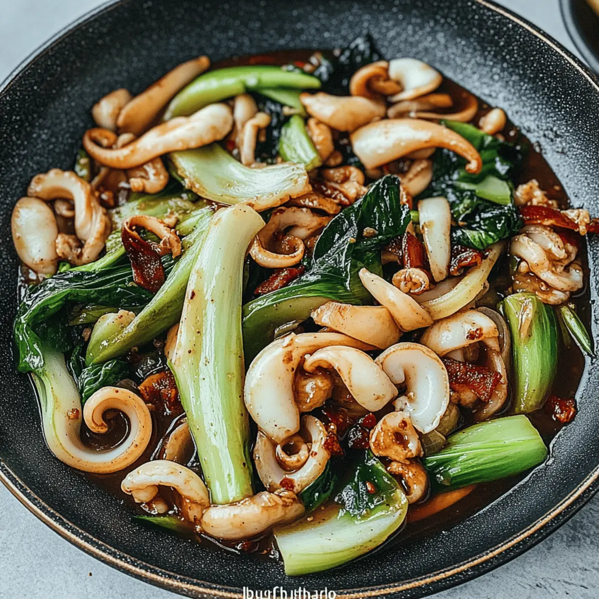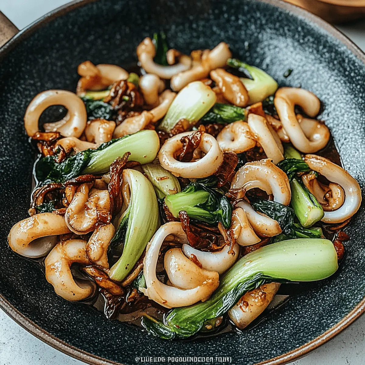 Have you ever stumbled upon a dish that somehow feels like a warm hug? My Quick and Healthy Squid and Bok Choy Stir Fry does just that, delivering both comfort and nutrition in one delicious bite. This homestyle Chinese recipe is a breeze to whip up and brings your weeknight dinners to life with vibrant colors and appetizing flavors. Not only is it a fantastic way to enjoy fresh seafood in a healthy light, but it also offers endless possibilities for substitutions—perfect for whatever you have on hand. Whether you’re a busy parent or just need a quick fix after a long day, this stir-fry is here to save the evening. What’s your favorite twist to make it your own? Why is This Stir Fry So Special? Simplicity: This Quick and Healthy Squid and Bok Choy Stir Fry is easy to prepare, making it perfect for busy weeknights. Bursting with Flavor: With the rich umami from soy sauce and the freshness of bok choy, each bite provides a delicious explosion of taste. Nutrient-Rich: Packed with protein and healthy omega-3s from squid, this dish is not just satisfying but good for you too! Versatility: Feel free to swap ingredients—fresh squid or shrimp, regular bok choy or spinach—cater to your tastes or pantry availability. For more variations, try it with different proteins, like in my Garlic Butter Potatoes. Quick to Cook: With minimal prep and cooking time, it’s the perfect solution for those evenings when time is tight but flavor is a must! Crowd-Pleaser: Whether you’re feeding the family or hosting friends, this stir fry impresses with its vibrant presentation and delightful taste. Squid and Bok Choy Stir Fry Ingredients Discover the delightful flavors that await you! For the Stir Fry Squid – A low-fat, high-protein seafood; fresh works best, but frozen is also a solid choice. Baby Bok Choy – Offers crisp texture and nutrition; feel free to substitute with other leafy greens if on hand. Dried Chili Pepper – Adds a kick of heat; select your preferred spice level or swap with fresh chili varieties. Garlic – Infuses aromatic depth, enhancing the overall flavor of the dish. Minced Ginger – Adds warmth and a zesty aroma that complements squid beautifully. For the Marinade & Sauce Shaoxing Wine – Deepens flavor in the marinade; for a gluten-free option, use dry sherry. Soy Sauce – Provides umami richness; tamari can be used as a gluten-free alternative. Fish Sauce – Enhances savory depth; essential for that authentic taste. Rice Vinegar – Balances the flavors with a touch of acidity. Brown Sugar – Balances savory and sweet notes; adjust to your taste preference. Cornstarch – Thickens the sauce, giving it a glossy finish; crucial for perfecting the texture. For Cooking Peanut Oil – Ideal for stir-frying due to its high smoke point; vegetable oil is a fine substitute if preferred. Salt – Enhances the flavor of the marinade—don’t shy away from this key ingredient! With these ingredients ready, you’re just moments away from creating a flavorful Squid and Bok Choy Stir Fry that will make your taste buds tingle! Step‑by‑Step Instructions for Squid and Bok Choy Stir Fry Step 1: Prepare the Squid Begin by cleaning and slicing the squid into thin rings to ensure even cooking. In a bowl, combine the squid with Shaoxing wine and a pinch of salt, allowing it to marinate for about 15 minutes. This step not only infuses flavor but also helps to tenderize the squid, setting a delicious foundation for your Squid and Bok Choy Stir Fry. Step 2: Make the Sauce While the squid marinates, prepare the sauce by mixing soy sauce, brown sugar, fish sauce, rice vinegar, and cornstarch in a separate bowl. Stir until the cornstarch fully dissolves and the mixture is smooth. This sauce will become the star of your dish, coating the seafood and vegetables in a rich and flavorful glaze that brings your stir fry to life. Step 3: Blanch the Squid In a pot of boiling water, carefully blanch the squid for just 30 to 40 seconds until it turns opaque and slightly firm. This quick cooking helps maintain the squid’s tenderness while preventing overcooking. Once done, drain the squid and pat it dry with paper towels to remove excess water, keeping the texture just right for the upcoming stir fry. Step 4: Stir-Fry the Aromatics In a large skillet or wok, heat peanut oil over medium-high heat until it shimmers. Add dried chili, minced garlic, and ginger, sautéing for about 30 seconds until fragrant. This will create a lovely aromatic base for your Squid and Bok Choy Stir Fry, filling the kitchen with tantalizing aromas as you stir to blend the flavors beautifully. Step 5: Add the Bok Choy Next, toss in the baby bok choy and stir-fry for 2 to 3 minutes. Cook until the bok choy is slightly wilted but still bright green and crisp, showcasing its fresh appeal. The vibrant color and crunch of bok choy complement the tender squid perfectly as you continue to build the depth of flavors in your dish. Step 6: Combine and Finish the Dish Pour the prepared sauce over the bok choy and quickly add the blanched squid, stirring to coat everything evenly for about 30 seconds. As the sauce thickens and clings to the ingredients, the flavors meld together beautifully. Immediately transfer your Squid and Bok Choy Stir Fry to a plate to prevent overcooking and serve hot for a quick and healthy dinner. Expert Tips for Squid and Bok Choy Stir Fry • Marinate Properly: Allowing squid to marinate for at least 15 minutes with Shaoxing wine enhances flavor while tenderizing it for your Squid and Bok Choy Stir Fry. • Avoid Overcooking: Squid can become chewy if overcooked; blanching for only 30-40 seconds keeps it tender. • Prep Ingredients First: Having all ingredients prepped and ready to go ensures a smooth stir-frying process and prevents rushing. • Customize Your Greens: Don’t feel limited to baby bok choy; feel free to swap for other greens like spinach or kale based on what you have. • Adjust Spice Leve