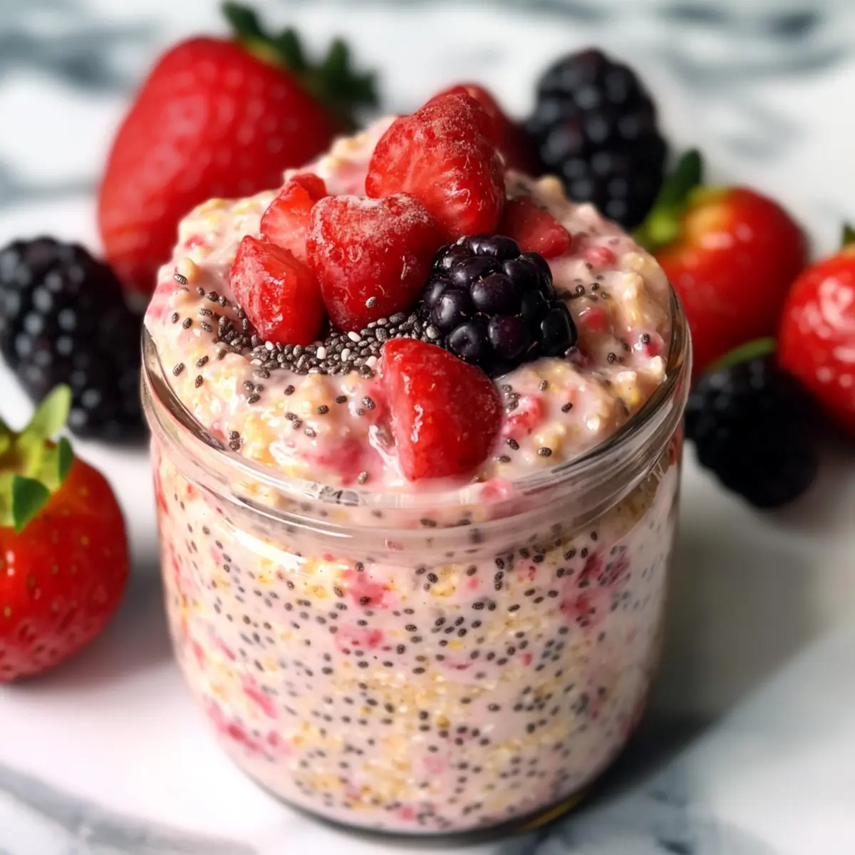 The first light of dawn spills into my kitchen, and the sweet aroma of strawberries is calling me to whip up something delightful. This is how I found myself diving into the world of Strawberries and Cream Overnight Oats—a breakfast that not only energizes your mornings but also satisfies your taste buds. With just a few minutes of prep the night before, you can revel in a creamy, nutritious feast that’s totally customizable to your cravings. Imagine waking up to a deliciously thick texture, knowing you’ve got a hearty, quick breakfast waiting for you that can fit any dietary needs, including vegan options. Plus, these oats can be your canvas for creative toppings, making every bowl a delightful surprise. Ready to explore a scrumptious way to kick-start your day? Let’s dive in! Why Choose Strawberries and Cream Oats? Delightful flavor fusion: The combination of sweet strawberries and creamy yogurt creates a mouthwatering breakfast that’s hard to resist. Minimal effort required: Prep takes just minutes, allowing you to savor the convenience of a healthy meal without spending your precious morning time in the kitchen. Customizable creativity: From crunchy granola to a sprinkle of chia seeds, feel free to mix in your favorite toppings for a unique delight every time. Health boost guaranteed: Packed with fiber and protein, these oats will keep you energized throughout the day, making it a perfect choice for anyone looking to ditch fast food in favor of homemade meals. Time-saving benefits: With a shelf life of up to four days in the fridge, you can prepare multiple servings, making mornings a breeze! Discover more healthy breakfasts like Cajun Salmon Pasta or explore our Creamy Shrimp Alfredo for meal inspiration. Ingredients for Strawberries and Cream Overnight Oats For the Oats • Rolled Oats – The heart of your dish, providing essential fiber and energy for a brisk morning start. • Plain Yogurt – Adds a rich creaminess and protein boost; substitute with non-dairy yogurt for a vegan-friendly option. • Cashew Milk – Hydrates your oats for a silky consistency; feel free to swap with any milk of your choice. For the Sweetness • Fresh Strawberries – Naturally sweet, these juicy gems bring a bright flavor and lovely texture to your oats; you can swap with other berries if desired. • Chia Seeds – A nutritious addition that enhances texture and boosts health benefits; they can be omitted if you’re short on time but may affect the creaminess. Optional Toppings • Honey or Maple Syrup – A drizzle adds an extra layer of sweetness; feel free to adjust based on your taste preference. • Granola – For a satisfying crunch, sprinkle some on top before serving to elevate your dish. Creating Strawberries and Cream Overnight Oats means embracing the freshness of your ingredients, making your breakfast not just a meal, but an experience! Step‑by‑Step Instructions for Strawberries and Cream Overnight Oats Step 1: Combine Ingredients In a mixing bowl or jar, place rolled oats, plain yogurt, and cashew milk. Stir these ingredients together until well combined, ensuring that the oats are fully submerged in the liquid. This will help them soften beautifully overnight. Aim to use a fork or whisk for a thorough mix, creating a creamy base for your Strawberries and Cream Overnight Oats. Step 2: Add Sweetness and Texture Fold in the diced fresh strawberries and chia seeds into the oat mixture. Gently combine these ingredients until the strawberries are evenly distributed throughout the oats. The chia seeds will not only add texture but also aid in thickening the mixture. Watch as the vibrant strawberries color the oats, promising a delightful breakfast experience. Step 3: Refrigerate Overnight Cover the bowl or jar tightly with a lid or plastic wrap and place it in the refrigerator. Allow the mixture to chill and absorb flavors for at least 4 hours, or preferably overnight. This step is crucial for achieving the ideal creamy texture in your Strawberries and Cream Overnight Oats while melding the sweet strawberry flavor into every bite. Step 4: Stir and Serve In the morning, remove the oats from the refrigerator and give them a good stir. If your oats are too thick for your liking, feel free to add a splash of additional cashew milk to loosen them up. This is your chance to taste and adjust sweetness with honey or maple syrup, ensuring a delicious start to your day. Step 5: Add Toppings and Enjoy Finally, top your Strawberries and Cream Overnight Oats with granola or extra slices of fresh strawberries for that added crunch. Serve cold directly from the jar or warm them slightly in the microwave if preferred. Embrace the delightful flavor combination and creative options as you dig into this healthy, energizing breakfast! What to Serve with Strawberries and Cream Overnight Oats? Creating the perfect breakfast involves delightful pairings that elevate your experience with every bite. Creamy Greek Yogurt: Offers a thicker texture and additional protein, enhancing the overall creaminess of your breakfast. Fresh Berries: Add a burst of color and flavor; raspberries or blueberries complement the strawberries beautifully and invite a variety of fruity goodness. A simple sprinkle can elevate your dish! Nut Granola: Provides a satisfying crunch that contrasts with the creamy oats, adding rich flavors and essential nutrients that keep you feeling full longer. Almond Butter: A drizzle introduces a nutty layer that pairs wonderfully with the sweet strawberries, creating a harmonious balance. It’s a decadent treat! Smoothie on the Side: Blend your favorite fruits for a refreshing drink that lightens up the meal while keeping it nourishing and vibrant. Think bananas and spinach for a pure health boost! Chia Seed Pudding: For those who adore all things pudding-like, this adds more depth and texture, presenting an enticing way to enjoy this superfood. Herbal Tea: Pairing with a soothing herb