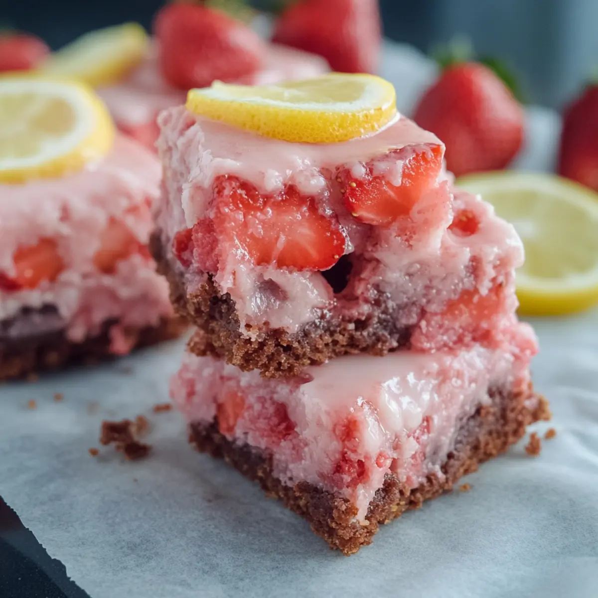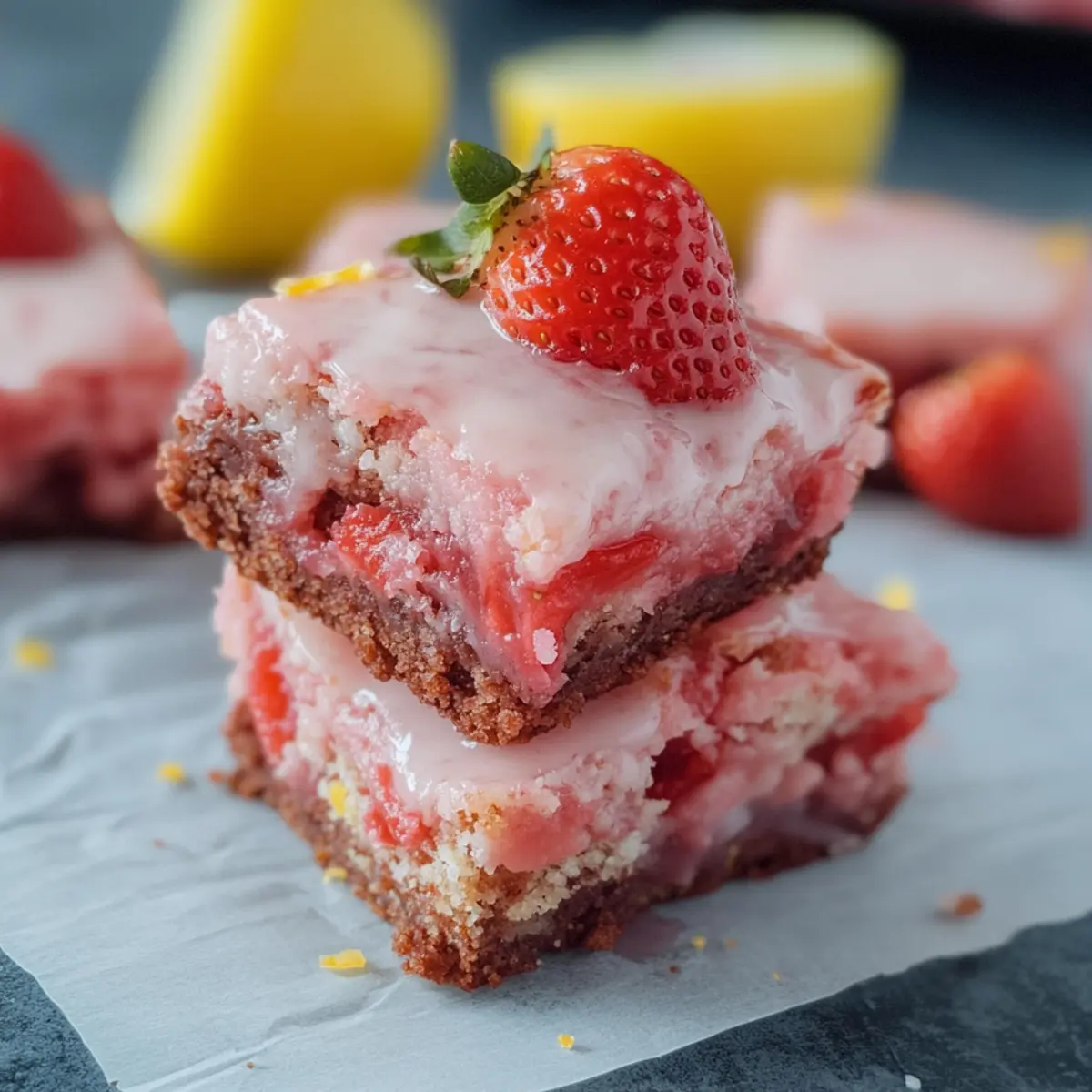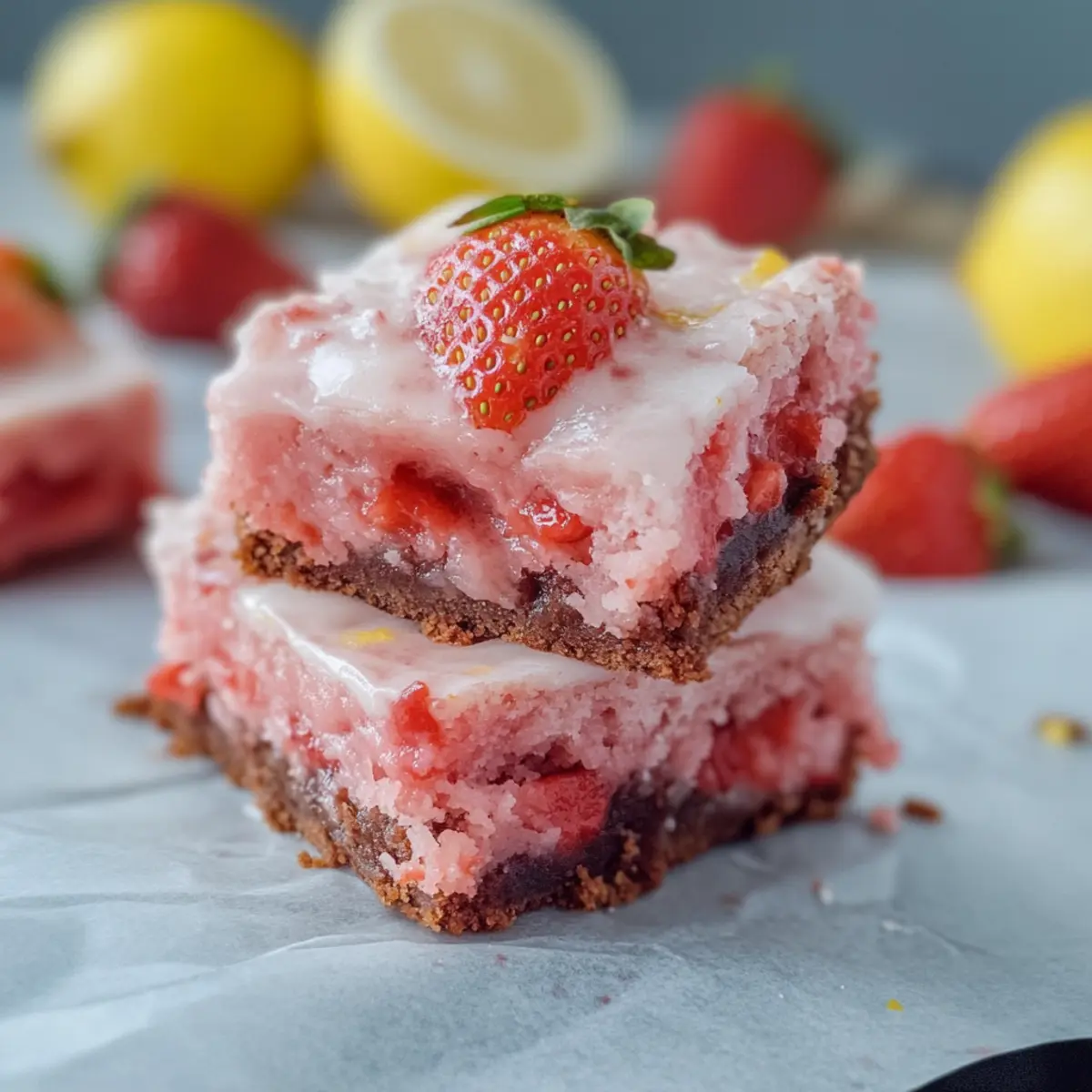 With summer just around the corner, it’s the perfect time to elevate your dessert game, and nothing hits the spot like these Strawberry Lemon Brownies. Imagine the delightful blend of fresh strawberries embracing a zesty lemon twist, creating a vibrant, fruity treat that dances on your palate. What I love most about this recipe is not just its quick prep time—ideal for those last-minute gatherings—but also how these brownies are packed with moisture, making them a guaranteed crowd-pleaser. Whether you serve them at a sunny picnic or enjoy a cozy afternoon snack, these Strawberry Lemon Brownies are sure to bring smiles. Are you ready to whip up a batch of these deliciously bold treats? Why are Strawberry Lemon Brownies a Must-Try? Irresistible Flavor Combination: These brownies deliver a joyful explosion of flavor with the perfect balance of sweet strawberries and tart lemon, making each bite unforgettable. Quick and Easy: With just a handful of ingredients, whipping up this recipe is a breeze, perfect for bakers of all levels who want a delicious dessert without the fuss. No Chocolate, No Problem: These brownies stand out in a world of chocolate desserts, offering a refreshing alternative that brightens up any dessert table. Versatile Treat: Serve them chilled, warm, or alongside ice cream; this dessert is great for any occasion, whether it’s a potluck, picnic, or a special family gathering. Vibrant Summer Appeal: The colorful layers and fruity profile make them a seasonal favorite you’ll look forward to as the temperature rises. Pair your brownies with a cool scoop of ice cream for an extra indulgence, or check out our recipe for Lemon Chicken Orzo for a complete summer meal! Ingredients • Strawberry Lemon Brownies Ingredients For the Brownies Strawberry Cake Mix – The main structure and sweetness; Betty Crocker works wonderfully! Fresh Strawberries – Adds a burst of fruity flavor and moisture; frozen strawberries (thawed) can be a convenient substitute. Lemon Juice – Infuses that zesty tartness; freshly squeezed is optimal for robust flavor. Large Eggs – Ensures everything binds beautifully together, giving the brownies moisture. For the Glaze Powdered Sugar – Sweetens and creates a lovely glaze; confectioner’s sweetener is a good sugar-free option. Additional Lemon Juice – Enhances the glaze flavor, creating a perfect pairing with the brownies. These Strawberry Lemon Brownies will become your new go-to treat for summer gatherings and casual moments alike! Step‑by‑Step Instructions for Strawberry Lemon Brownies Step 1: Preheat the Oven Begin by setting your oven to 350°F (175°C). This is a crucial step as it ensures your Strawberry Lemon Brownies bake evenly, resulting in a perfectly moist texture. While the oven warms up, gather your baking supplies and prepare your dish, so you’re ready to go. Step 2: Prepare Baking Dish Line an 8-inch square baking dish with parchment paper, allowing some overhang for easy removal later. Next, spray the parchment with cooking spray to prevent sticking. This preparation is vital for achieving those lovely, clean edges on your brownies once baked. Step 3: Mix Ingredients In a large mixing bowl, combine the strawberry cake mix, chopped fresh strawberries, freshly squeezed lemon juice, and large eggs. Using a spatula or whisk, mix them together until the batter is smooth and well combined, with no dry patches. This thick, vibrant mixture is the basis for your delicious Strawberry Lemon Brownies! Step 4: Bake Once your batter is ready, pour it into the prepared baking dish, spreading it evenly with a spatula. Bake the brownies in the preheated oven for 18-20 minutes. Check for doneness by inserting a toothpick into the center; it should come out clean or with a few moist crumbs attached. Step 5: Cool After baking, remove the dish from the oven and let the brownies cool in the pan for about 10 minutes. Slide the brownies onto a cooling rack using the parchment overhang for easier handling. Allow them to cool completely, which helps set their texture before glazing. Step 6: Make the Glaze While the brownies are cooling, prepare the glaze. In a bowl, mix powdered sugar with the additional lemon juice until smooth. Adjust the consistency as needed—aim for a pourable yet thick glaze that will beautifully coat your Strawberry Lemon Brownies. Step 7: Glaze the Brownies Once the brownies are fully cooled, pour the lemon glaze over the top, letting it cascade down the sides, creating a luscious finish. Allow the glaze to set for a few minutes, enhancing the flavors and adding a glossy appearance before cutting your brownies into squares. Make Ahead Options These Strawberry Lemon Brownies are perfect for busy home cooks looking to save time! You can prepare the batter up to 24 hours in advance. Simply mix the strawberry cake mix, chopped fresh strawberries, lemon juice, and eggs, then store it in an airtight container in the refrigerator. To maintain quality and freshness, cover it tightly to prevent drying out. When you’re ready to bake, just pour the chilled batter into your prepared baking dish and bake as directed. If you prefer, you can also glaze the brownies up to 3 days ahead—just store the glazed brownies in an airtight container at room temperature to keep them moist and delicious. Enjoy your hassle-free baking! Expert Tips for Strawberry Lemon Brownies Use Fresh Ingredients: Fresh strawberries and lemons provide the best flavor. If using frozen strawberries, make sure to thaw and drain them well to avoid excess moisture in your brownies. Perfect Baking Dish: Opt for a ceramic or glass baking dish for even heat distribution. Non-stick pans can sometimes cook unevenly, leading to dry edges and a soggy middle. Check for Doneness: Insert a toothpick into the center of your brownies to ensure they’re perfectly baked. Remember, a few moist crumbs are ideal; overbaking can lead to dryness. Glazing Tips: Make the glaze 