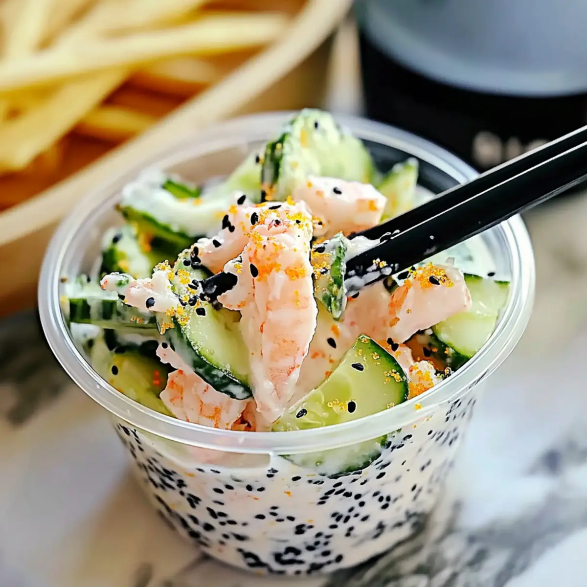 No, freezing is not recommended for this salad due to the high water content in cucumbers. Freezing can result in a mushy texture when thawed, which isn’t ideal for this dish. I suggest enjoying it fresh or preparing it just before serving to maintain that delightful crunch.