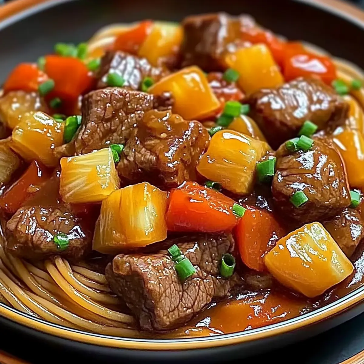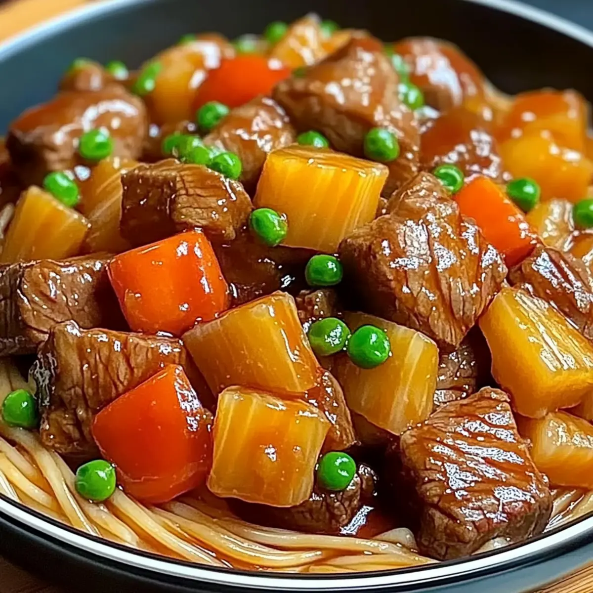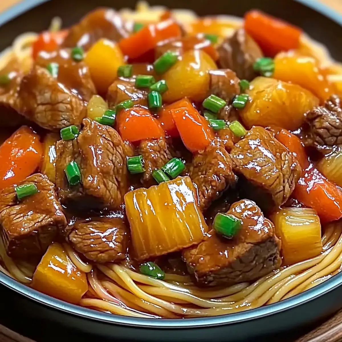 As I stood there, the aroma of sizzling beef filled the kitchen, whisking me away to my favorite local Chinese takeout spot. That’s the magic of Sweet and Sour Beef—this dish transforms a handful of ingredients into a vibrant mosaic of flavors that dance harmoniously on the palate. In just 30 minutes, you can whip up this quick and comforting meal that’s not only a crowd-pleaser but also easily adaptable; try swapping out the beef for tofu or tempeh to cater to your vegetarian friends! With its appealing balance of tangy, sweet, and savory notes, this homemade version brightens up weeknight dinners, leaving takeout in the dust. Curious about how to achieve that glossy sauce and crispy texture? Let’s delve into the details! Why is Sweet and Sour Beef So Irresistible? Flavor Explosion: Sweet and Sour Beef delivers an incredible clash of tangy and savory notes that keep your taste buds dancing. Quick and Easy: You can whip this dish up in just 30 minutes, making it perfect for busy weeknights. Versatile Ingredients: Easily swap beef for tofu or tempeh to cater to vegetarian diners, keeping everyone happy at the table! Colorful and Crunchy: With vibrant bell peppers and juicy pineapple, this dish is as visually appealing as it is delicious. Crowd-Pleaser: Whether it’s a family dinner or a gathering with friends, this recipe guarantees satisfied appetites and rave reviews! Enhance your meal experience by serving it alongside classic dishes like Garlic Butter Steak or Ranch Macaroni Cheese. Sweet and Sour Beef Ingredients • Whip up this delicious dish with these key ingredients! For the Beef Beef (flank steak or sirloin) – Thinly sliced against the grain, it infuses the dish with rich, tender texture. Cornstarch – Coats the beef for that crispy exterior you’re craving. Salt & Black Pepper – Essential seasonings that elevate the overall flavor of the dish. Vegetable Oil – Needed for frying the beef, ensuring each bite is wonderfully crisp. For the Vegetables Bell Peppers (red and green) – Add vibrant color and a satisfying crunch; feel free to substitute with snap peas or carrots! Onion – Offers natural sweetness and deepens the flavor profile. For the Sauce Soy Sauce – The key flavor component; use gluten-free tamari if you’re adhering to a gluten-free diet. Ketchup – Provides that essential sweetness and tanginess to balance the savory notes. Rice Vinegar – Delivers acidity that creates balance in the sauce. Brown Sugar – Enhances sweetness and aids in caramelizing the vegetables. Pineapple Juice (or water) – Adds moisture and a hint of sweetness for a delightful sauce. Cornstarch Slurry – Thickens the sauce at the end for that glossy Sweet and Sour Beef finish. For the Crunch Pineapple Chunks – Juicy morsels that bring bright sweetness and a pop of flavor; fresh or canned works perfectly! Garlic (minced) – Infuses the dish with aromatic goodness, making it feel like a restaurant experience at home. Gather these ingredients and you’re on your way to creating a symphony of flavors with your Sweet and Sour Beef! Step‑by‑Step Instructions for Sweet and Sour Beef Step 1: Prep the Beef Begin by slicing your flank steak or sirloin thinly against the grain to ensure tenderness. Next, coat the beef lightly with cornstarch, which will help achieve that wonderful crispy exterior when frying. Set aside while you gather the remaining ingredients, soaking in the delightful aroma of the beef. Step 2: Brown the Beef Heat a large skillet over high heat and pour in a couple of tablespoons of vegetable oil. Once the oil shimmers, carefully add the beef in batches, searing for 2-3 minutes until browned and crispy. Use tongs to turn the beef for even cooking, then remove it from the skillet and set aside on a plate while you prepare to cook the vegetables. Step 3: Cook the Vegetables In the same skillet, add the vibrant bell peppers, sliced onion, and minced garlic. Stir-fry these for about 3-4 minutes until they are crisp-tender and the onions are slightly translucent. The sizzling sound and bright colors will signal they’re perfectly cooked. This step sets the stage for the Sweet and Sour Beef’s delightful flavor profile. Step 4: Prepare the Sauce Next, deglaze the skillet with soy sauce, ketchup, rice vinegar, brown sugar, and pineapple juice. Stir the mixture well, scraping any browned bits from the bottom of the pan. Bring the sauce to a light simmer and allow the flavors to meld for about 2-3 minutes, releasing appetizing aromas that hint at the deliciousness to come. Step 5: Thicken the Sauce Add the cornstarch slurry to the simmering sauce, stirring continuously. Within a minute, you’ll notice the sauce thickening and taking on a glossy finish—a beautiful sign that the Sweet and Sour Beef is coming together perfectly. Ensure it reaches a nice, saucy consistency before moving on to the next step. Step 6: Combine Return the browned beef and pineapple chunks to the skillet, tossing everything together to coat in the luscious sauce. Allow the mixture to heat through for another 2-3 minutes, ensuring the beef is warmed and the pineapple is slightly heated. The colorful blend of ingredients will create a mouthwatering sight! Step 7: Serve Finally, serve your vibrant Sweet and Sour Beef over steamed jasmine rice or alongside stir-fried noodles for a complete and satisfying meal. Garnish if desired with toasted cashews or peanuts for an extra layer of flavor and texture. Gather your loved ones around the table and enjoy this homemade delight! How to Store and Freeze Sweet and Sour Beef Room Temperature: Sweet and Sour Beef should not be left at room temperature for more than 2 hours to maintain food safety. Fridge: Store leftovers in an airtight container in the refrigerator for up to 3 days. To enjoy later, reheat in a skillet over medium heat, adding a splash of water if needed. Freezer: Avoid freezing Sweet and Sour Beef with the vegetables as they may