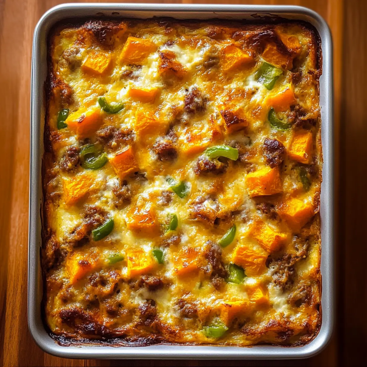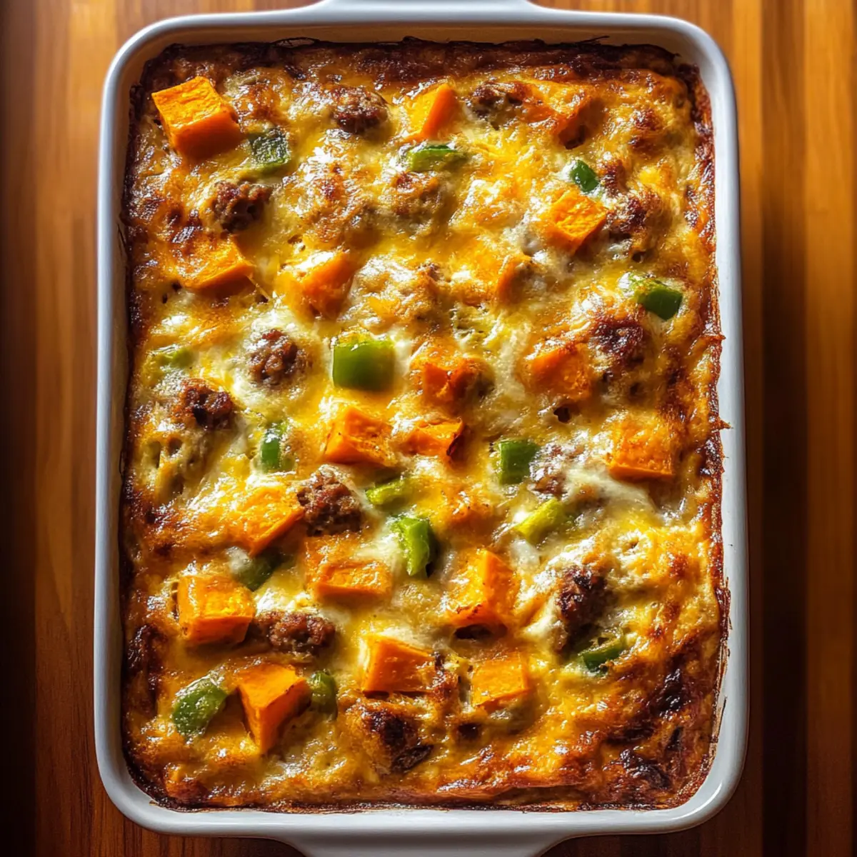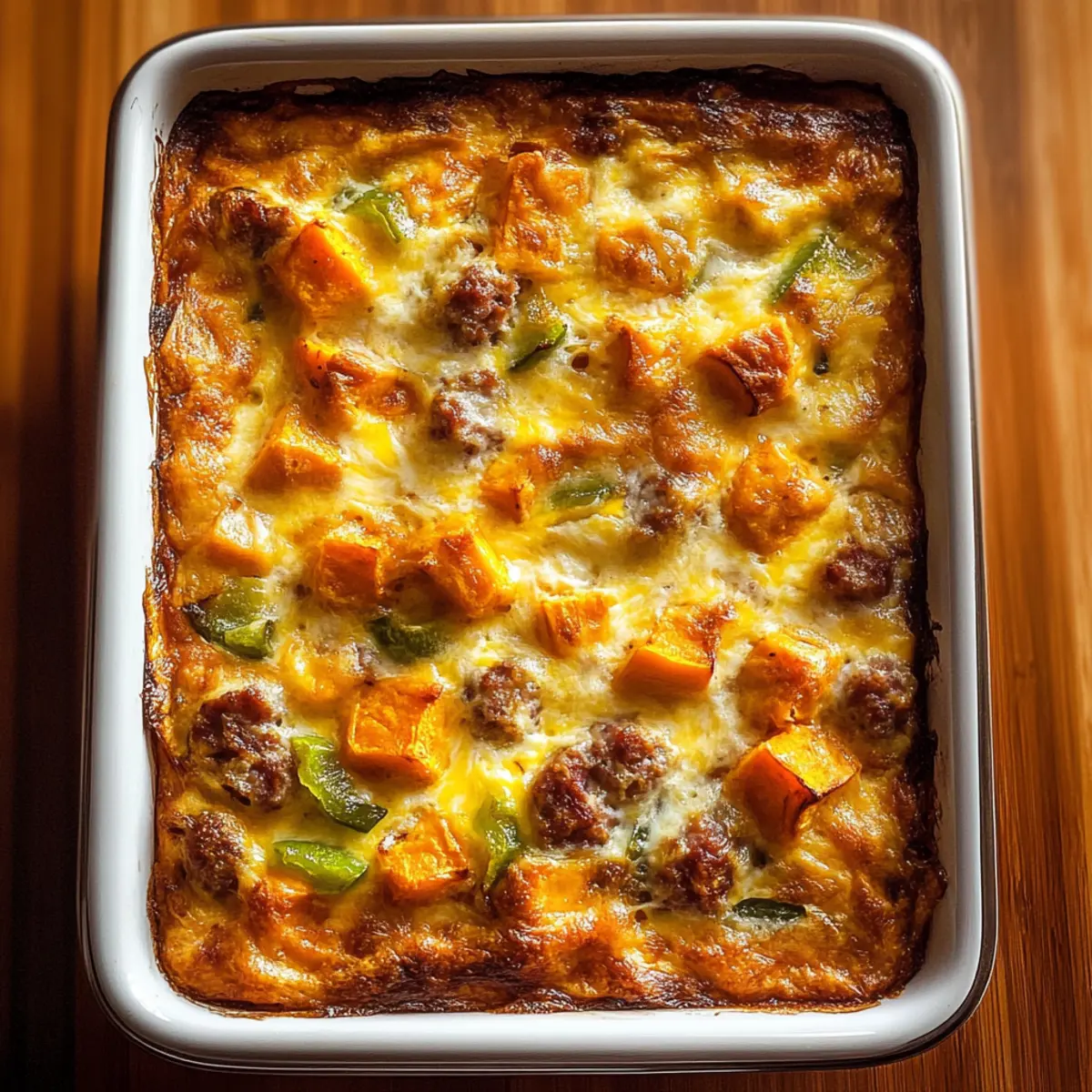 This morning, I found myself staring into the fridge, searching for inspiration when the bright orange hue of sweet potatoes caught my eye. That’s when I decided to whip up a Sweet Potato Egg Casserole that’s not just a feast for the eyes, but also a nutritious and filling breakfast option. Perfect for any busy morning, this delightful dish can be prepped the night before, allowing you to enjoy a warm meal with minimal effort. Savory turkey sausage, creamy cheese, and nutrient-packed veggies come together in a symphony of flavors, making each bite a comforting escape. Whether you’re planning a family brunch or simply need a satisfying start to your day, this casserole is sure to leave you both energized and excited. Ready to bring some warmth to your kitchen? Let’s dive in! Why is this casserole a breakfast game-changer? Nutritious and Filling: The Sweet Potato Egg Casserole is packed with wholesome ingredients that keep you full and satisfied, perfect for combating morning hunger. Easy to Make Ahead: You can prepare this dish the night before, saving you time and hassle on busy mornings—simply pop it in the oven and enjoy a comforting breakfast! Versatile Ingredients: Feel free to swap out the turkey sausage for a vegetarian option or replace sweet potatoes with butternut squash for a delightful twist. Crowd-Pleasing Flavor: The rich, savory flavor of the sausage paired with creamy cheese and tender sweet potatoes makes this casserole a hit at any brunch gathering. Guilt-Free Indulgence: With its nutrient-dense components, such as sweet potatoes and fresh veggies, it’s a breakfast that not only tastes great but also nourishes your body. If you’re looking for more meal prep ideas, check out our Joe Pasta Casserole for another deliciously easy option! Sweet Potato Egg Casserole Ingredients For the Casserole • Sweet Potatoes – Provide natural sweetness and texture; Garnet or Jewel varieties elevate the dish. • Eggs – The main binding ingredient, packed with protein for a satisfying meal. • Turkey Sausage – Adds savory flavor; feel free to substitute with plant-based alternatives for a meat-free version. • Onion – Enhances flavor and moisture; shallots can be a great swap if desired. • Green Pepper – Adds a pop of color and taste; replace with red or yellow bell peppers for variety. • Garlic – Fresh garlic provides aromatic depth; always use fresh for the best flavor. • Shredded Cheese – Cheddar or Monterey Jack create creaminess; omit for a dairy-free option. • Milk – Helps achieve a creamy, custard-like texture; plant-based milk works as a great substitute. • Fresh Thyme – Offers an herbal note; can be replaced with dry thyme or omitted if unavailable. • Salt & Pepper – Key seasonings enhance the overall flavor profile of the casserole. Optional Toppings • Avocado – Sliced avocado adds creaminess and healthy fats; a perfect finishing touch. • Fresh Herbs – A sprinkle of fresh parsley or cilantro brightens the dish and adds color. This Sweet Potato Egg Casserole is not only delicious; it also serves as a warm embrace on busy mornings. Enjoy the joy it brings to your table! Step‑by‑Step Instructions for Sweet Potato Egg Casserole Step 1: Preheat the Oven Begin by preheating your oven to 350°F (175°C). This ensures that your Sweet Potato Egg Casserole will bake evenly and develop that beautiful golden hue as it cooks. Setting the oven early allows the warm air to circulate, making the casserole fluffy and delightful. Step 2: Prepare the Veggies Chop your sweet potatoes, onion, green pepper, and garlic into small pieces, maintaining about ½-inch uniformity for even cooking. This step is crucial for ensuring that each bite is packed with flavor and texture. Make sure you have your knife ready and a cutting board on hand—let the chopping begin! Step 3: Grease the Casserole Dish Grease a 9×13-inch casserole dish with a bit of avocado oil or non-stick spray. This will prevent your Sweet Potato Egg Casserole from sticking to the dish, allowing for easy serving once it’s all baked to perfection. Gently coat the bottom and sides to create a non-stick barrier. Step 4: Sauté the Vegetables In a large skillet, heat some avocado oil over medium heat. Add the chopped sweet potatoes, onion, and green pepper, sautéing for 8 to 9 minutes until they become tender. Stir occasionally; add the garlic in the last minute to prevent burning, infusing the dish with an aromatic kick. Step 5: Transfer to the Dish Once the vegetables are sautéed and tender, remove them from the heat and spread them evenly in the greased casserole dish. This base layer will trap the delicious flavors, providing an irresistible foundation for the subsequent layers of the Sweet Potato Egg Casserole. Step 6: Cook the Sausage In the same skillet, add the turkey sausage and cook over medium heat until browned, about 5 to 7 minutes. Break it apart into crumbles as it cooks, allowing the savory flavor to release and mingle with any leftover vegetable essence in the pan. Step 7: Combine Ingredients Once the sausage is cooked, drain any excess grease if necessary, then mix it with the sautéed vegetables in the casserole dish. This combination creates a hearty foundation for your casserole, blending the flavors of savory sausage with sweet and tender veggies. Step 8: Whisk the Egg Mixture In a separate bowl, whisk together the eggs, milk, thyme, salt, pepper, and shredded cheese until fully combined. The mixture should be smooth and slightly frothy, creating a custard-like blend that will envelop the sausage and vegetables beautifully in your Sweet Potato Egg Casserole. Step 9: Pour and Stir Gently pour the egg mixture over the vegetable and sausage layer in the casserole dish, ensuring an even distribution. Use a spatula to stir slightly, making the ingredients cozy and ensuring that no part is left behind in this comforting dish. Step 10: Bake the Casserole Place the