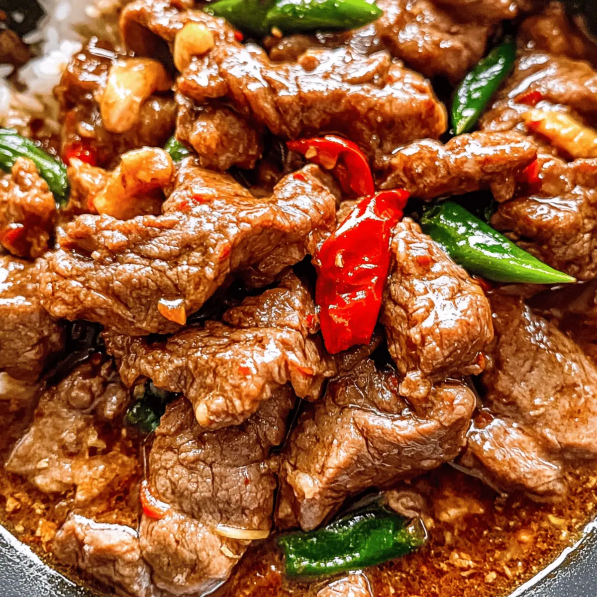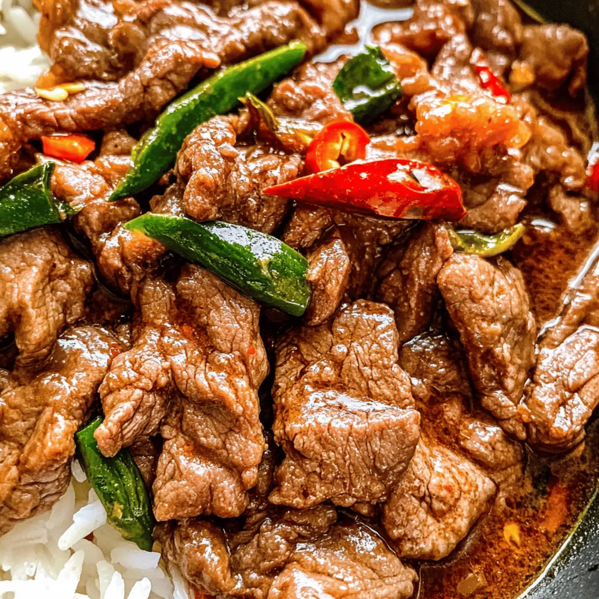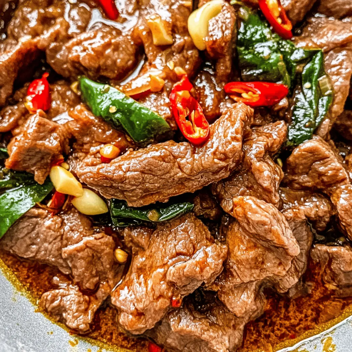 The aroma wafting from the kitchen is like a preview of a fiery adventure waiting to unfold. This Thai Hot and Spicy Beef Stir-Fry is not just another meal, but a culinary escape, transporting you straight to bustling Bangkok with its bold flavors and zesty herbs. In just 20 minutes, this quick and high-protein dish transforms ordinary weeknights into extraordinary dining experiences. You’ll savor every mouthful of tender beef cloaked in a vibrant, spicy sauce, making it a recipe that is both a crowd-pleaser and a perfect fit for a busy lifestyle. Ready to ignite your taste buds and bring the heart of Thailand to your table? Let’s dive into this deliciously spicy creation! Why is Thai Hot and Spicy Beef Irresistible? Quick preparation: In just 20 minutes, you can whip up a mesmerizing dish that dazzles the senses. Bold flavors: A medley of fragrant herbs and spicy curry paste brings this dish to life, perfect for those longing for a taste of Thailand. High protein: Satisfy your hunger with each bite of tender beef, making it an ideal option for those focused on nutrition. Versatility: Easily swap ingredients to cater to your dietary preferences—try chicken or tofu for a varied twist. You’ll love its vibrant appearance and tantalizing taste, making it an impressive choice for both family dinners and entertaining guests. For more hearty flavors, don’t miss out on these recipes for Cheesy Ground Beef or Ground Beef Enchiladas. Thai Hot and Spicy Beef Ingredients • Prepare to indulge in the irresistible flavors of Thai Hot and Spicy Beef with these essential ingredients! For the Stir-Fry Oil – Provides necessary fat for cooking; consider using vegetable or sesame oil for a unique flavor. Red Curry Paste – Gives the dish its characteristic heat and flavor; adjust the quantity based on your spice tolerance. Kaffir Lime Leaves – Add a unique citrus aroma; if unavailable, fresh lime zest can work as an excellent substitute. Garlic – Enhances flavor and aroma; fresh minced garlic is preferred, but garlic powder can save the day if needed. Chilies – Contribute spiciness; fresh or dried can be used, adjusting the quantity to suit your heat preference. Beef (10 ounces) – The main protein source, it should be thinly sliced against the grain for optimal tenderness; feel free to substitute with chicken, pork, tofu, or seafood. Oyster Sauce – Adds umami and sweetness; ensure your chosen brand is gluten-free if required. Fish Sauce – Provides depth of flavor and saltiness; check for gluten-free options when shopping. White Sugar – Balances the dish’s heat with sweetness; coconut sugar or honey can be delicious alternatives. Water – Used to adjust the sauce’s consistency if necessary. Turn your kitchen into a Thai haven with these ingredients and prepare for a delightful cooking adventure! Step‑by‑Step Instructions for Thai Hot and Spicy Beef Stir-Fry Step 1: Heat the Oil Begin by heating a wok or large skillet over medium-high heat. Add about 2 tablespoons of oil and allow it to shimmer, indicating it’s hot enough for cooking. This will create a perfect base for your Thai Hot and Spicy Beef Stir-Fry, giving it a rich flavor right from the start. Step 2: Incorporate Aromatics Once the oil is sizzling, stir in 2 tablespoons of red curry paste, 2 kaffir lime leaves, and 2 minced garlic cloves. Sauté these ingredients for about 20 seconds, stirring constantly until fragrant. The vibrant aromas will fill your kitchen and signal that it’s time to add the beef. Step 3: Cook the Beef Add 10 ounces of thinly sliced beef to the hot wok. Stir-fry the beef for about 2 to 3 minutes, ensuring it’s cooked just until it turns from pink to brown. Be careful not to overcook, as tender, juicy beef is the star of your Thai Hot and Spicy Beef Stir-Fry. Step 4: Mix in Sauces After the beef is cooked, pour in 2 tablespoons of oyster sauce, 1 tablespoon of fish sauce, and 1 tablespoon of white sugar. Along with a splash of water, stir well to combine all the ingredients. Cook for an additional minute, allowing the flavors to meld and the sugar to dissolve completely. Step 5: Adjust Consistency and Serve Check the sauce consistency; if you prefer it thicker, let it simmer for another 1-2 minutes over medium heat. Once satisfied, remove the wok from the heat. Serve your Thai Hot and Spicy Beef Stir-Fry hot over steamed white rice or enjoy it right out of the pan for a bold, fiery experience. Expert Tips for Thai Hot and Spicy Beef Quality Beef: Choose high-quality beef, such as sirloin or flank steak, for tenderness and flavor. Thin slices will ensure it cooks quickly without getting tough. Control Spice: If you’re sensitive to heat, start with less red curry paste and gradually add more. Taste as you go to find your perfect spice level. Fresh Ingredients: Using fresh garlic and chilies elevates the dish’s flavor. Dried alternatives work, but nothing beats fresh for authenticity! Stay Stirring: Keep the beef moving in the wok; this prevents overcooking and allows even searing, ensuring each juicy bite is a delight. Leftover Love: Store any leftovers in an airtight container for up to 3 days. Reheat gently on the stove, adding a splash of water to restore moisture. Customize Veggies: Feel free to toss in your favorite veggies towards the end of cooking, like bell peppers or snap peas, for added color and nutrition! Make Ahead Options Preparing Thai Hot and Spicy Beef Stir-Fry in advance is a game-changer for busy home cooks! You can slice the beef and marinate it with the oyster sauce, fish sauce, and sugar up to 24 hours before cooking; this enhances the flavors and ensures tender meat. Additionally, you can prep the aromatic ingredients—like minced garlic and red curry paste—48 hours in advance and store them in airtight containers in the refrigerator. When you’re ready to serve, simply heat the wok, stir-fry the beef for about 2-3 minutes, and then add the prepped aromati