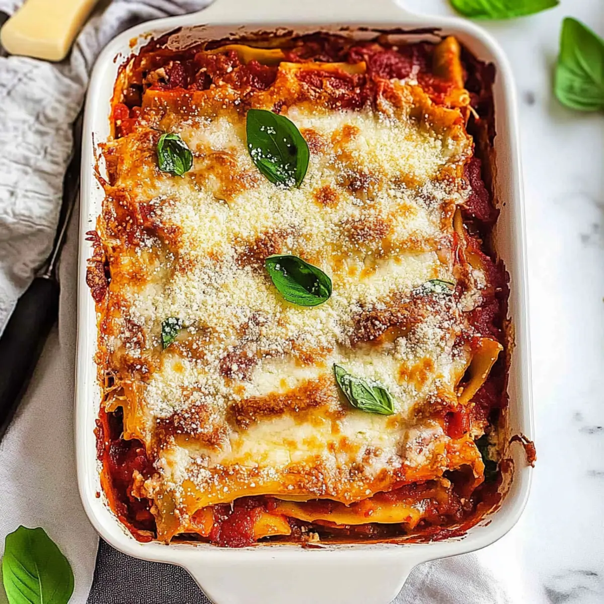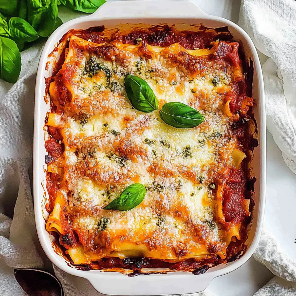 The aroma of melting cheese wafts through my kitchen as I pull my latest creation from the oven—a hearty Three Cheese Lasagna that’s not just for vegetarians but for anyone craving comforting, homemade goodness. This recipe comes together in just 15 minutes of prep, making it an ideal choice for busy weeknights or cozy gatherings. Layers of creamy ricotta, stretchy mozzarella, and savory Parmesan create a melody of textures and flavors, turning this dish into a family favorite that you’ll want to share with everyone. Plus, it’s freezer-friendly, meaning that delicious leftovers are just a quick reheat away! Ready to dive into a lasagna that’s as easy to make as it is to love? Let’s get cooking! Why is This Lasagna So Special? Simplicity: With only 15 minutes of prep time, this Three Cheese Lasagna is perfect for busy weeknights, allowing you to whip up a comforting meal without any hassle. Flavor Explosion: The trio of ricotta, mozzarella, and Parmesan layer together, creating a rich and creamy flavor that makes each bite absolutely heavenly. Endless Versatility: Make it your own by adding sautéed veggies like spinach or mushrooms, or even experimenting with gluten-free or lentil-based sheets for different dietary needs. Crowd-Pleasing: Whether you’re serving a casual dinner or hosting a gathering, this lasagna is sure to impress everyone at the table. Paired with garlic bread or a fresh salad, it becomes a meal that everyone will love. Meal Prep-Friendly: Leftovers taste even better the next day and can easily be frozen for those days when you need a quick, hearty meal. You can savor this beloved dish any night of the week! Embrace the comforting essence of homemade lasagna tonight! Three Cheese Lasagna Ingredients For the Cheese Mixture • Ricotta Cheese (16 oz) – Provides creaminess and structure; substitute with blended full-fat cottage cheese for a similar texture. • Egg (1 large) – Binds the ricotta mixture together; consider a flaxseed egg or commercial egg replacers for an egg-free version. • Shredded Mozzarella Cheese (¼ cup + 2½ cups more) – Adds gooeyness and flavor; replace with vegan mozzarella for a dairy-free option. • Grated Parmesan or Romano Cheese (¼ cup) – Enhances flavor depth; opt for vegan cheese if needed. For the Sauce and Seasonings • Garlic Powder (¼ tsp) – Adds an aromatic element; use fresh minced garlic for a more robust flavor. • Fine Sea Salt and Black Pepper – Essential seasonings to enhance flavors; adjust to taste. • Fresh Parsley (¼ cup, finely chopped) – Brings freshness and color; can be substituted with fresh basil or oregano. For the Lasagna Layers • Dry Lasagna Sheets (9 oz) – Forms the base layers; use gluten-free sheets to accommodate dietary preferences. • Marinara Sauce (35 oz) – Provides moisture and flavor between layers; feel free to use any store-bought or homemade sauce. Optional Topping • Grated Parmesan Cheese (½ cup) – Extra flavor topping that adds richness; omit or substitute with nutritional yeast for a dairy-free version. Gather these ingredients before you start, and get ready to enjoy your delightful Three Cheese Lasagna! Step‑by‑Step Instructions for Three Cheese Lasagna Step 1: Preheat the Oven Begin by preheating your oven to 400°F (200°C). While it heats up, grab a 13 x 9-inch baking dish and lightly grease it for easy removal later. This Thermo-regulated step is crucial for achieving that golden, bubbling top of your Three Cheese Lasagna. Step 2: Prepare the Cheese Mixture In a large mixing bowl, combine 16 oz of ricotta cheese, 1 large egg, ¼ cup of shredded mozzarella, ¼ cup of grated Parmesan, ¼ cup of finely chopped fresh parsley, ¼ tsp of garlic powder, and a sprinkle of salt and pepper. Use a sturdy spatula to blend everything until smooth. This creamy filling will be the heart of your lasagna. Step 3: Add Marinara Sauce to the Dish Pour approximately ½ cup of marinara sauce into the bottom of your greased baking dish, spreading it evenly with the back of a spoon. This layer not only prevents sticking but adds moisture that will keep the noodles tender. You’re setting the stage for a flavorful Three Cheese Lasagna. Step 4: Layer the Lasagna Sheets Carefully lay out enough dry lasagna sheets to cover the sauce in a single layer. Be sure to leave no gaps, as this will ensure each piece is filled with cheesy goodness. The sheets will soften during baking, soaking up the flavors of the marinara sauce. Step 5: Spread the Cheese Mixture Spoon ⅓ of the prepared cheese mixture over the lasagna sheets, spreading it out evenly to create a luscious layer. Then, sprinkle a few tablespoons of mozzarella cheese on top. This introduction of gooey cheese will enhance every bite of your Three Cheese Lasagna. Step 6: Repeat the Layers Continue the layering process by adding another layer of marinara sauce, followed by more lasagna sheets and the remaining cheese mixture. Sprinkle more mozzarella cheese on top of this layer. Repeat this until all your ingredients are used, finishing with a top layer of sheets covered with sauce and a generous amount of mozzarella. Step 7: Bake the Lasagna Cover the baking dish with aluminum foil to prevent excessive browning, and place it in the preheated oven. Bake for 40-45 minutes or until the noodles are tender and the top is bubbly and golden. Ensure the heat is evenly distributed for the best results. Step 8: Check for Doneness After 40 minutes, carefully remove the foil and check the lasagna for doneness by inserting a knife into the center. If the knife slides in easily, your Three Cheese Lasagna is ready! If not, return it to the oven for an additional 5-10 minutes, keeping an eye on the top color. Step 9: Let it Rest Once done, remove the lasagna from the oven and allow it to rest for 15 minutes before slicing. This resting time helps the layers firm up, making it easier to cut and serve. Your deliciously cheesy masterpi