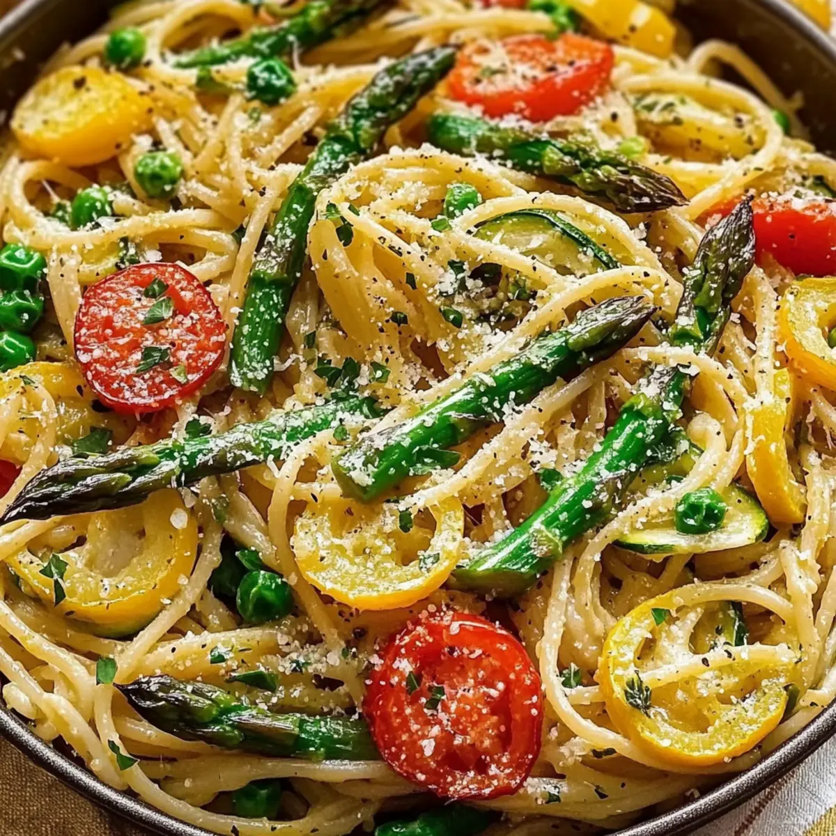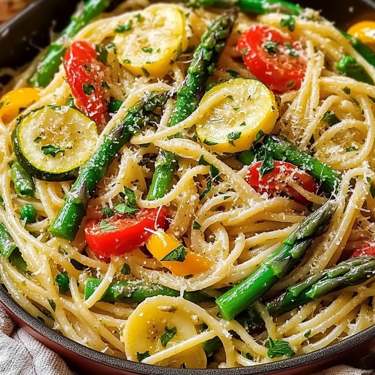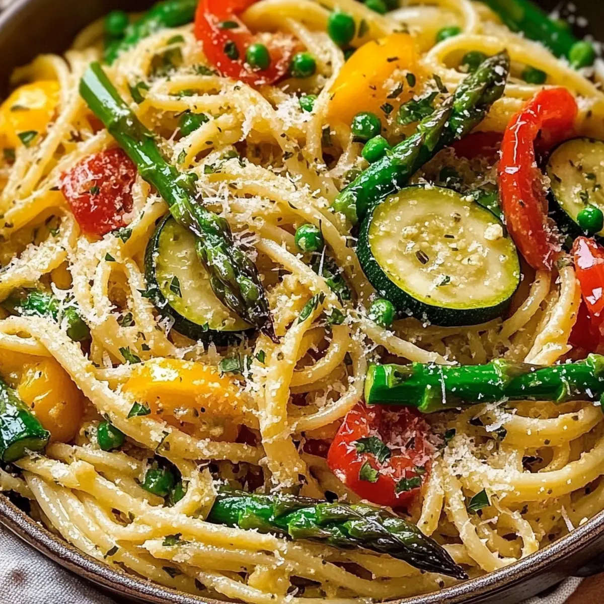 As the sun sets and the aroma of fresh vegetables fills the kitchen, I can’t help but feel that magic of home cooking. Tonight, I’m whipping up a vibrant Vegetable Pasta with Fresh Veggies, and I’m so excited to share it with you. This quick meal not only brings together the colors and nutrients of seasonal produce, but it’s also perfect for those busy weeknights when you want something hearty yet healthy. In just 25 minutes, you’ll create a satisfying dish that’s both easy to prepare and wonderfully versatile—enjoy it hot on your dinner table or chilled as a refreshing pasta salad for lunch. So, are you ready to dive into the joy of homemade goodness? Let’s get cooking! Why is this Vegetable Pasta a must-try? Quick and Easy: This dish comes together in just 25 minutes, making it ideal for those hectic weeknights when time is of the essence. Vibrant Flavors: Bursting with the freshness of seasonal vegetables, every bite is a celebration of garden goodness. Customizable: Use your favorite veggies, whether it’s bell peppers, zucchini, or asparagus, and even frozen options for ultimate convenience. Healthy and Wholesome: Packed with nutrients and can easily be made vegan—just skip the cheese! Crowd-Pleaser: Easily serves as a satisfying main course or a delightful side dish alongside items like Garlic Butter Pasta or Garlic Butter Shrimp Pasta. You’ll wonder why you didn’t try this recipe sooner! Vegetable Pasta with Fresh Veggies Ingredients For the Pasta • Pasta – Choose any type you prefer; whole wheat or gluten-free options work wonderfully. For the Fresh Veggies • Bell Peppers – Brighten the dish with colorful bell peppers; they add sweetness and crunch. • Zucchini – A versatile vegetable that absorbs flavors and adds moisture. • Asparagus – Delicate yet bold, asparagus brings a tender crispness to your pasta. • Frozen Vegetables – A convenient alternative if you’re short on fresh options; simply add them during the sautéing step. For the Sauce • Olive Oil – Essential for sautéing and adds a rich flavor; extra virgin is best for depth. • Herbs (Basil, Parsley) – Fresh herbs elevate the dish; dry herbs can also be used if fresh aren’t available. For Serving (Optional) • Parmesan Cheese – Adds a savory finish; omit or substitute with vegan cheese for a dairy-free version. • Lemon Juice – A drizzle brightens the flavors; refreshing and zesty! This Vegetable Pasta with Fresh Veggies is not just easy to make, but packed with nutrition and color—making it a delightful meal option you’ll love! Step‑by‑Step Instructions for Vegetable Pasta with Fresh Veggies Step 1: Cook the Pasta Begin by boiling a large pot of salted water over high heat. Once the water reaches a rolling boil, add your favorite pasta and cook according to the package instructions until al dente, usually about 8-10 minutes. Stir occasionally to prevent sticking, and keep an eye on it, as you want the pasta firm yet tender. Drain the pasta in a colander and set it aside. Step 2: Chop the Vegetables While the pasta cooks, prepare your fresh veggies for the Vegetable Pasta. Using a sharp knife and cutting board, chop bell peppers, zucchini, and asparagus into bite-sized pieces. Aim for uniform sizes to ensure even cooking. As you chop, admire the vibrant colors that will soon come together in your delicious dish! Step 3: Sauté the Vegetables Heat 2 tablespoons of olive oil in a large skillet over medium heat. Once the oil shimmers, add the chopped vegetables to the pan. Sauté them for about 5 to 7 minutes, stirring frequently until they are tender yet still crisp, and the aromas begin to fill your kitchen. Keep an eye on the colors; they should start to brighten beautifully. Step 4: Combine Pasta and Vegetables Once the vegetables have reached their tender state, reduce the heat to low, and add the drained pasta straight into the skillet. Toss gently using tongs to combine everything evenly. The warmth from the pasta will help the flavors meld together, making your Vegetable Pasta with Fresh Veggies more delicious. Step 5: Add Herbs and Season To elevate the flavors, sprinkle in fresh herbs like basil and parsley. Drizzle a bit more olive oil over the mixture, and season generously with salt and pepper to taste. Toss everything together until the herbs are evenly distributed throughout the pasta and veggies, creating a fragrant and inviting dish. Step 6: Serve the Pasta Now it’s time to plate your delightful Vegetable Pasta! Serve it immediately on warm plates, allowing the vibrant colors to shine. For those who prefer it cold, you can let it cool to room temperature, making it a great option for a refreshing pasta salad. Step 7: Optional Final Touches For an extra burst of flavor, consider drizzling the finished dish with a little lemon juice or olive oil. If you like, top with freshly grated Parmesan cheese or vegan cheese for a creamy finish. This final touch amplifies the taste and creates an irresistible appeal for your Vegetable Pasta with Fresh Veggies. Make Ahead Options These delicious Vegetable Pasta with Fresh Veggies are perfect for meal prep enthusiasts! You can chop your vegetables up to 3 days in advance and store them in an airtight container in the refrigerator to maintain their crispness. Additionally, cook the pasta and cool it completely before refrigerating, as this prevents it from becoming mushy (this can also be done 24 hours ahead). When ready to serve, simply sauté the prepped veggies in olive oil, mix in the chilled pasta, add herbs and seasoning, and voilà! You’ll have a fresh, vibrant meal ready to enjoy with minimal effort, perfect for those busy weeknights! Storage Tips for Vegetable Pasta with Fresh Veggies Fridge: Store leftover vegetable pasta in an airtight container for up to 3 days. This keeps the flavors fresh while maintaining the dish’s delightful texture. Freezer: Freeze leftovers in a freezer-safe contain