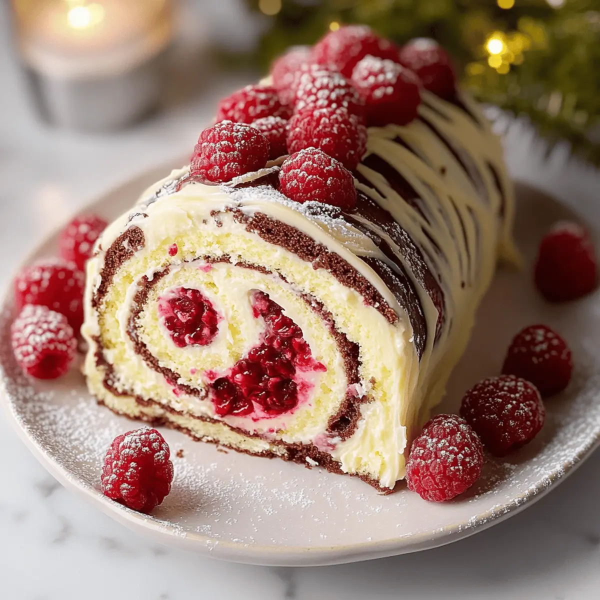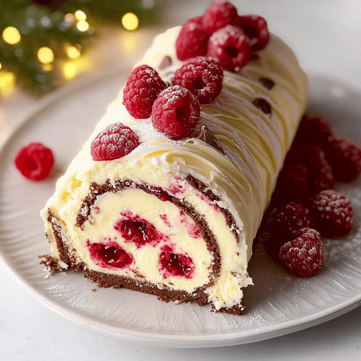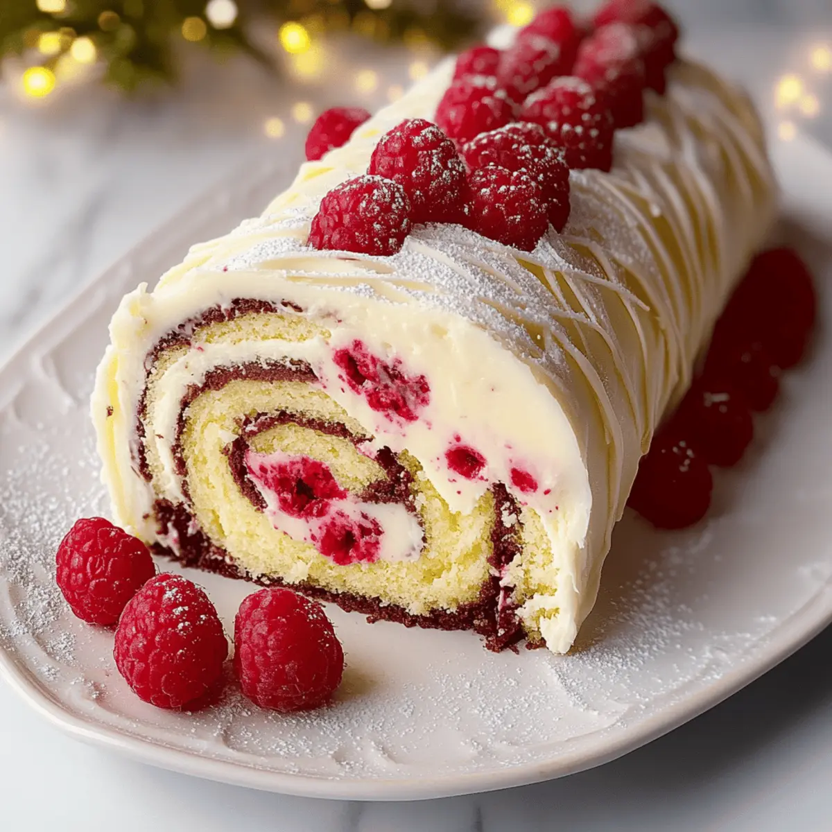 As I stood in my kitchen, the aroma of fresh-baked chocolate wrapped around me like a cozy embrace, I couldn’t help but feel a wave of holiday nostalgia. There’s something magical about creating an Elegant White Chocolate Raspberry Yule Log Dessert that instantly elevates any festive gathering. This impressive centerpiece not only looks stunning but also embraces a delightful balance of rich white chocolate and vibrant raspberries, offering a refreshing twist that makes it perfect for those who crave homemade indulgence. Plus, with its simple preparation, this recipe lets you impress your guests without spending all day in the kitchen. Curious to see just how easy it is to roll up this delightful dessert? Let’s dive in! Why Is This Yule Log Special? Impressive Appearance: This dessert is not just a treat for the taste buds but also a feast for the eyes, making it the stunning highlight of your holiday table. Flavor Fusion: The luscious pairing of white chocolate and tart raspberries creates an irresistible flavor combination that excites the palate. Effortless Elegance: With just a few simple steps, you can craft a show-stopping dessert that looks like it came straight from a gourmet bakery. Versatile Variations: Feel free to get creative! Swap out raspberries for strawberries or try a different chocolate ganache to personalize your Yule Log experience. You can even explore options like Nuns Puffs for a different holiday treat! Time-Saving Treat: This recipe can be prepared in advance, allowing you to enjoy stress-free holiday celebrations without sacrificing flavor and creativity. Ultimate Crowd Pleaser: Whether it’s for family gatherings or festive parties, this Yule Log will be sure to impress and have your guests asking for seconds! White Chocolate Raspberry Yule Log Ingredients • The perfect blend for your festive creation! For the Cake All-Purpose Flour – Provides structure to the cake; can substitute with a gluten-free flour blend. Unsweetened Cocoa Powder – Adds rich chocolate flavor and color; consider Dutch-processed for a darker taste. Baking Powder – Leavens the cake to achieve a light, airy texture; check freshness for optimal rise. Salt – Enhances the flavors; kosher or sea salt is best for this recipe. Large Eggs – Brings moisture and binds the ingredients together; can swap with flax eggs for a vegan option. Granulated Sugar – Sweetens the cake and assists in leavening; brown sugar can deepen the flavor. Milk – Keeps the cake moist; almond or oat milk can be used as alternatives. Vegetable Oil – Ensures tenderness in the cake; melted coconut oil works well as a substitute. Vanilla Extract – Infuses a warm, sweet aroma; use pure vanilla for a richer flavor. For the Filling and Ganache White Chocolate (Chopped) – The star ingredient for ganache and filling; dairy-free chocolate is a good vegan alternative. Heavy Cream – Creates a luscious whipped texture for the filling and ganache; consider coconut cream for a dairy-free option. Fresh Raspberries – Provides tartness and beautiful color; frozen raspberries can be substituted if fresh ones aren’t available—just thaw and drain excess liquid. Powdered Sugar – Optional for sweetening whipped cream; adjust to taste. For Garnishing Fresh Raspberries – Adds a pop of color and freshness to the presentation. Mint Leaves – Enhances visual appeal and provides a refreshing contrast; a nice touch for serving. Powdered Sugar – Dusting over the log elevates the dessert’s appearance, making it look even more festive. Now that you have all the ingredients laid out, you’re one step closer to creating a stunning White Chocolate Raspberry Yule Log that’s sure to impress your guests! Step‑by‑Step Instructions for White Chocolate Raspberry Yule Log Recipe Step 1: Preheat Your Oven Begin by preheating your oven to 350°F (175°C). Prepare a 15×10-inch jelly roll pan by lining it with parchment paper and greasing the edges lightly to ensure easy removal of the cake later. This important first step sets the stage for a beautifully baked White Chocolate Raspberry Yule Log. Step 2: Mix the Dry Ingredients In a medium mixing bowl, whisk together 1 cup of all-purpose flour, 1/3 cup of unsweetened cocoa powder, 1 teaspoon of baking powder, and 1/4 teaspoon of salt. This combination of dry ingredients is crucial for the structure and flavor of the cake. Ensure there are no lumps in the cocoa powder, as this will help achieve a smooth texture. Step 3: Beat Eggs and Sugar In a large mixing bowl, beat 4 large eggs with 1 cup of granulated sugar using an electric mixer set to medium speed. Continue whisking for about 3 to 5 minutes until the mixture is light, fluffy, and pale yellow. This process aerates the batter, ensuring a light and airy texture for your Yule Log. Step 4: Combine Wet Ingredients Next, add 1/2 cup of milk, 1/4 cup of vegetable oil, and 1 teaspoon of vanilla extract to the egg mixture. Mix gently until fully combined. This step helps to moisten the dry ingredients while enhancing the flavor profile of the White Chocolate Raspberry Yule Log, creating a rich base for your cake. Step 5: Fold in Dry Ingredients Carefully fold the dry ingredient mixture into the wet ingredients using a spatula. Mix just until combined—don’t overmix! The goal is to maintain the airiness from the eggs, which is essential to achieving a light texture. Spread the batter evenly into the prepared jelly roll pan. Step 6: Bake the Cake Place the pan in the preheated oven and bake for 12 to 15 minutes. To test doneness, insert a toothpick in the center; it should come out clean. Once baked, remove the pan from the oven. The cake should be slightly springy to the touch, indicating it is perfectly poised for rolling. Step 7: Cool the Cake Immediately invert the cake onto a clean kitchen towel dusted with powdered sugar. Carefully peel away the parchment paper. While the cake is still warm, roll it up with the to